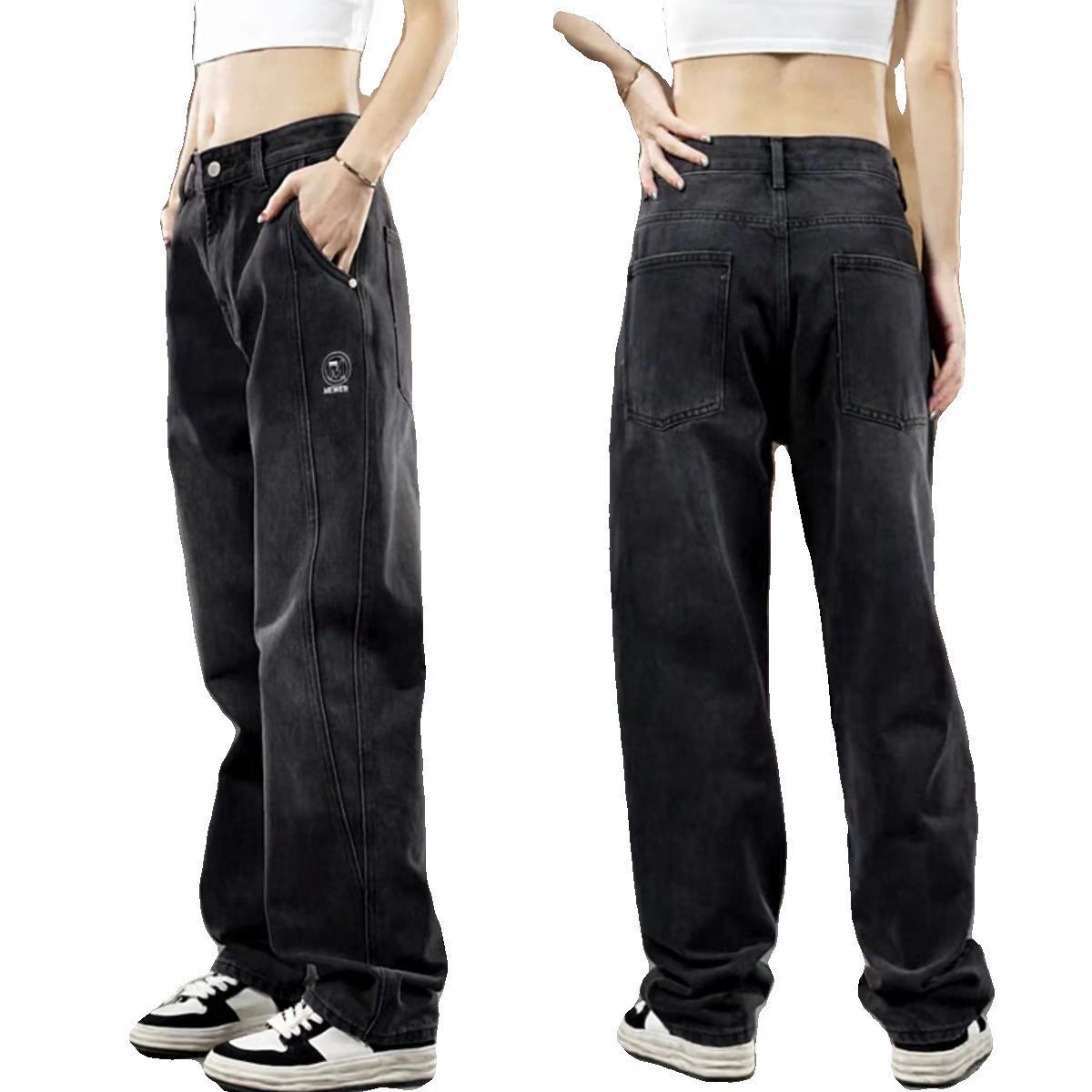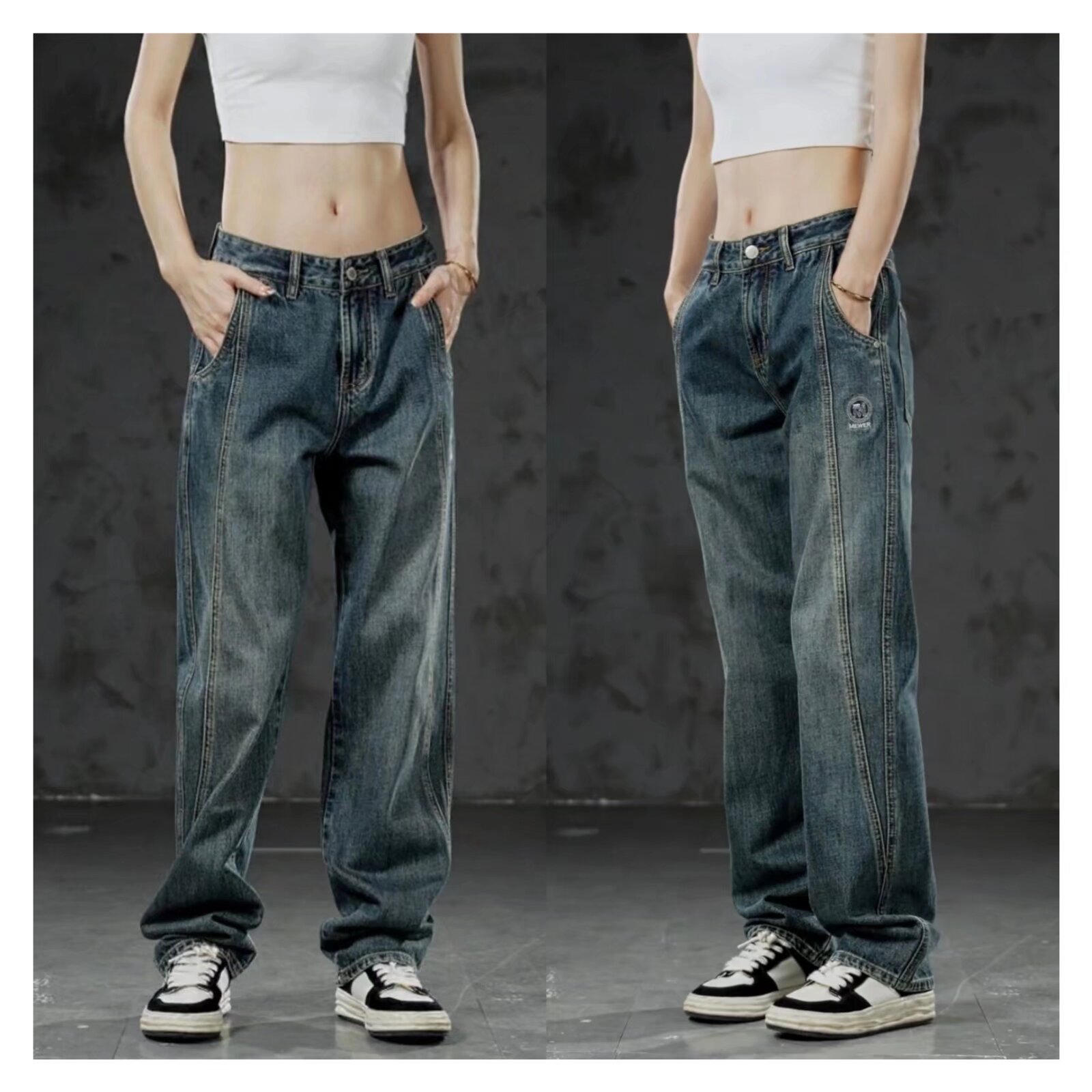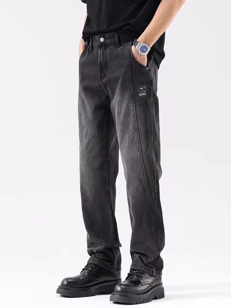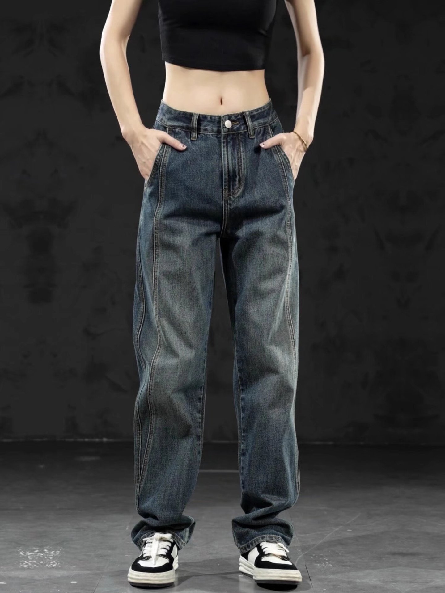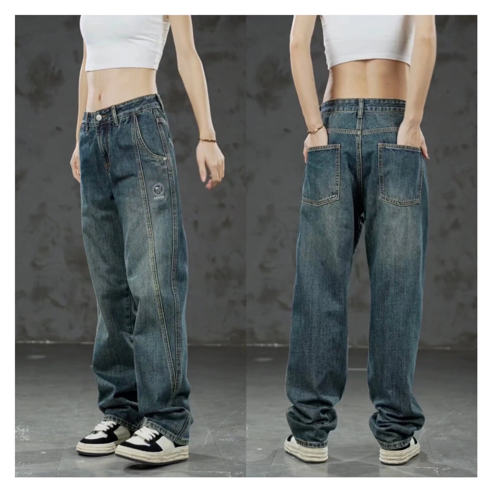 봄과 가을 새로운 미국 스타일 레트로 오래 씻은 넓은 다리 청바지 남자 느슨한 올매치 할란 스트레이트 캐주얼 바지스토어 가기