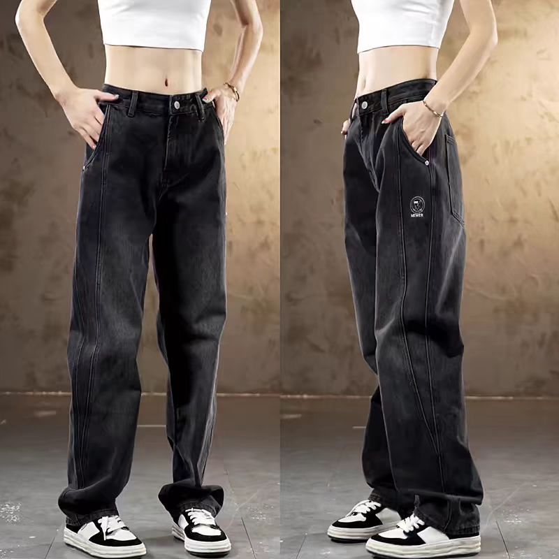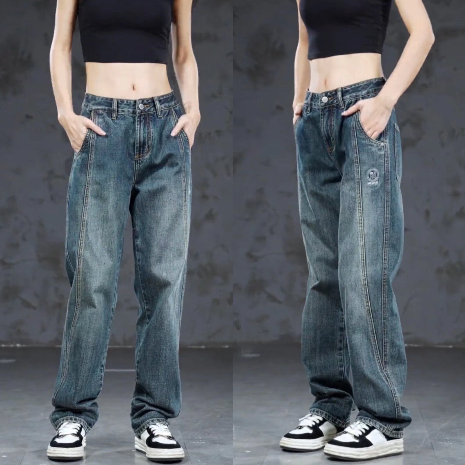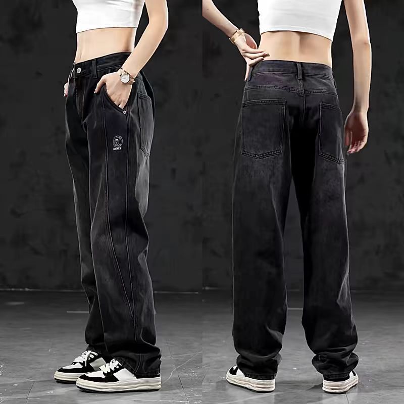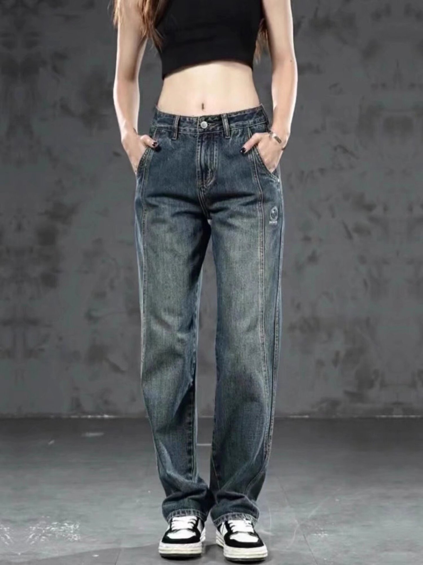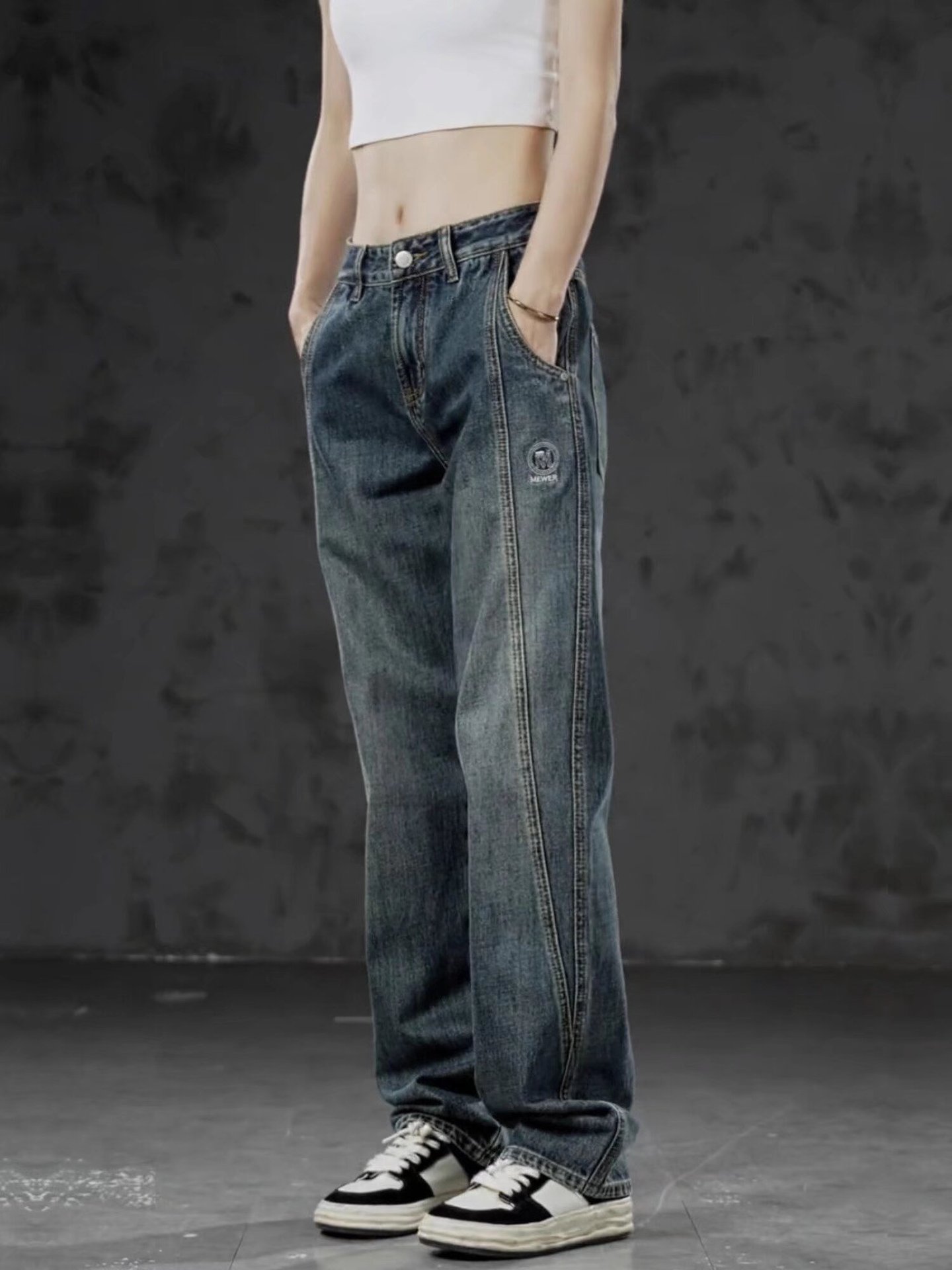 봄과 가을 새로운 미국 스타일 레트로 오래 씻은 넓은 다리 청바지 남자 느슨한 올매치 할란 스트레이트 캐주얼 바지스토어 가기