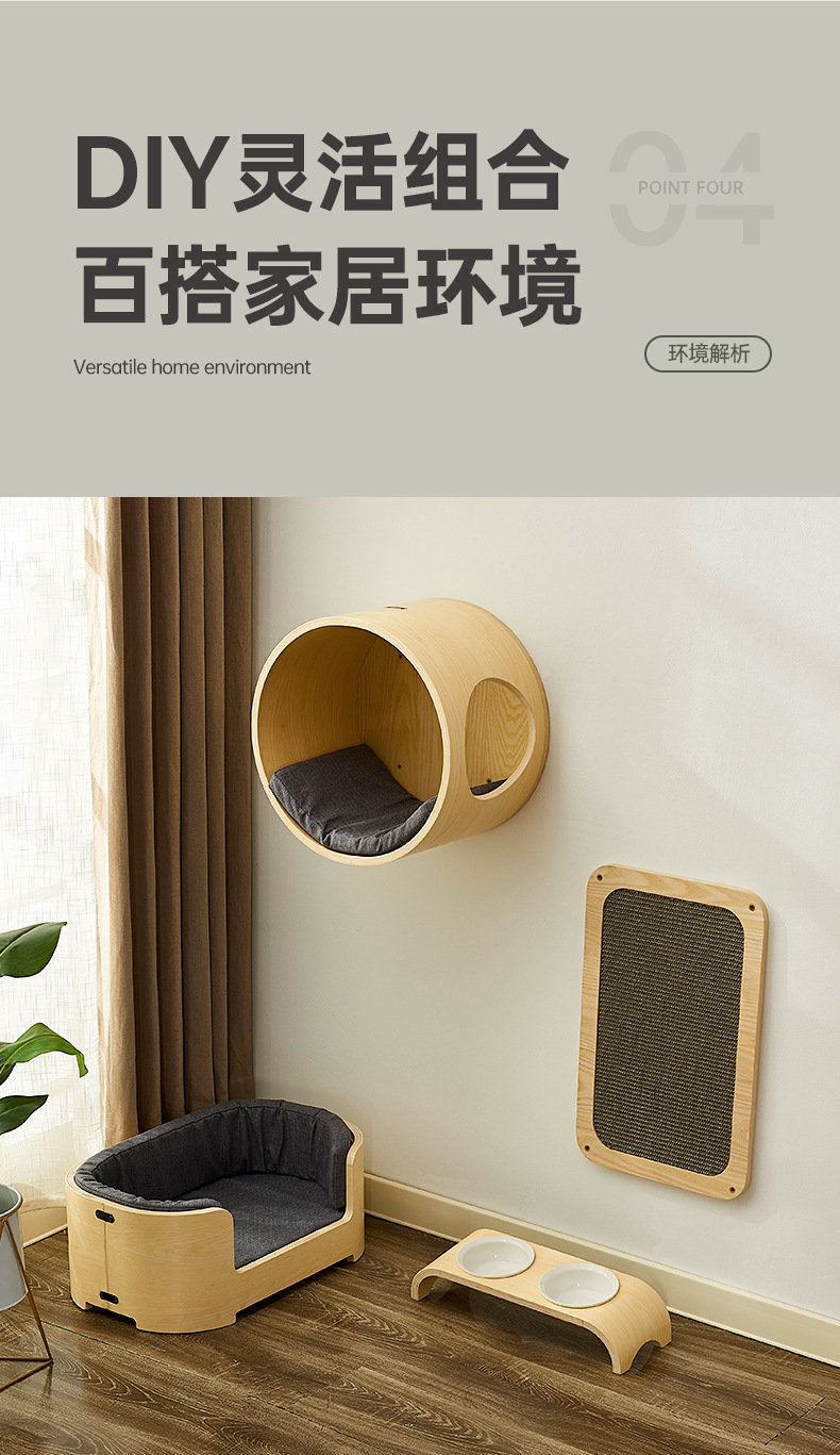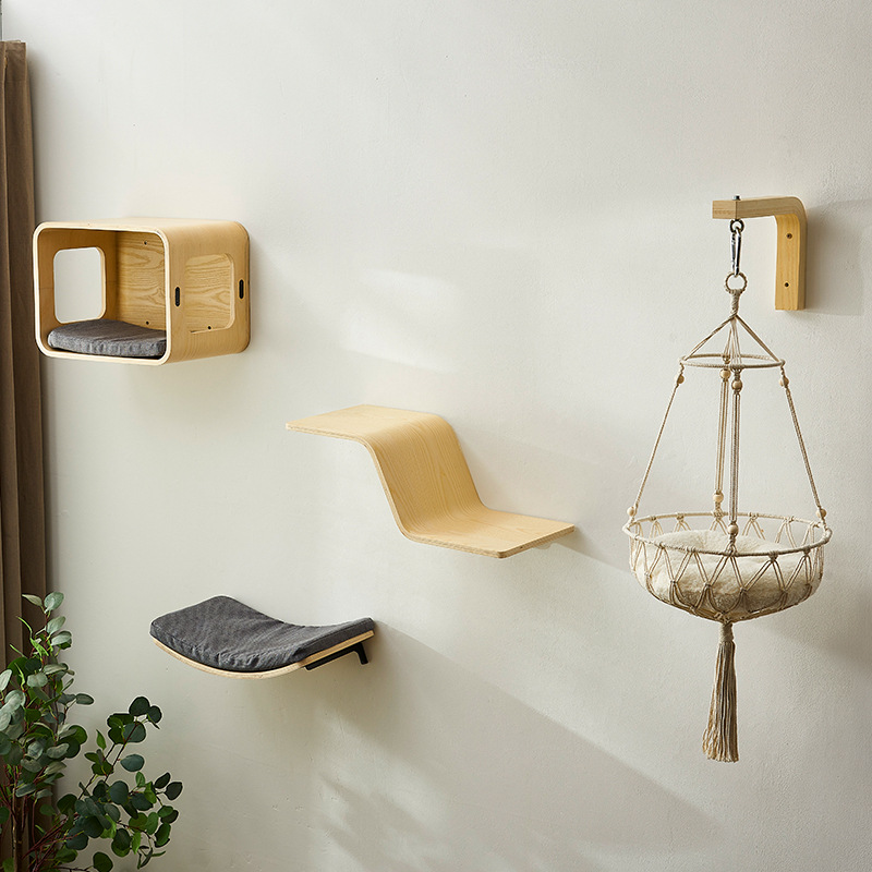 Shui Mu Sheng 커브 보드 고양이 벽 클라이밍 랙 벽 단단한 나무 고양이 둥지 통합 고양이 랙 고양이 스프링 보드 크로스 테두리스토어 가기
