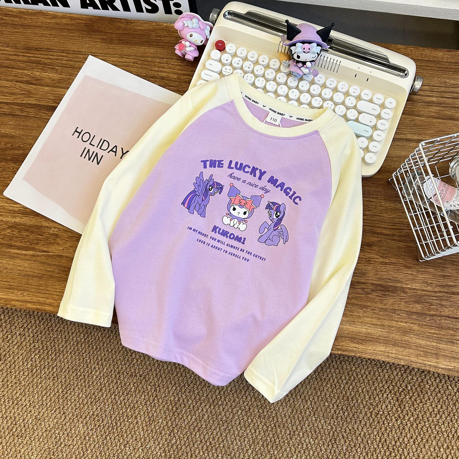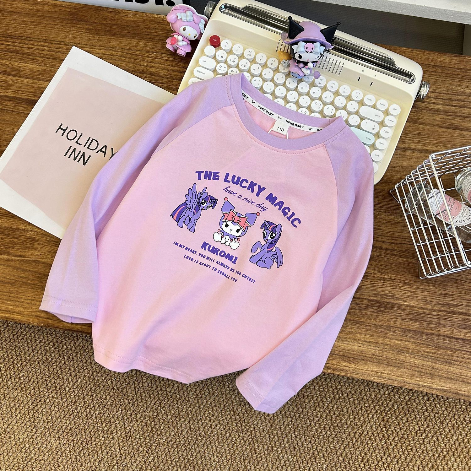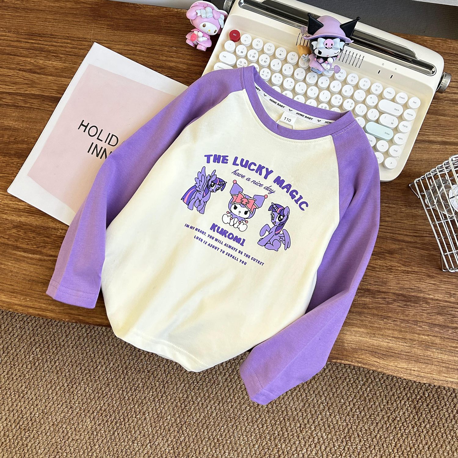 특가 봄철 아동용 하의 셔츠 여아용 중대형 아동용 긴팔 티셔츠 만화 쿠로미 순면 라운드넥 상의스토어 가기