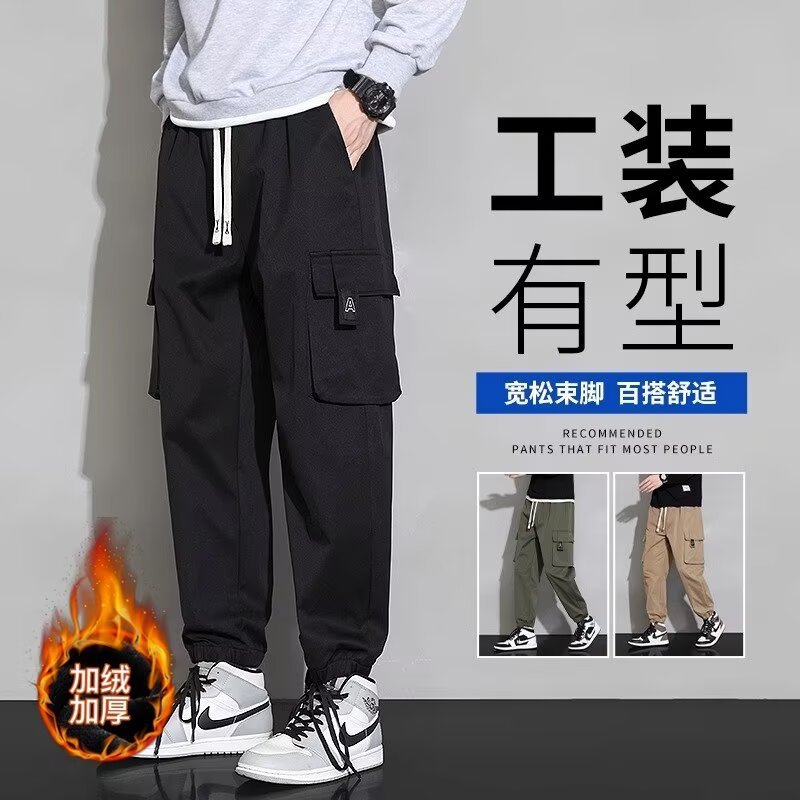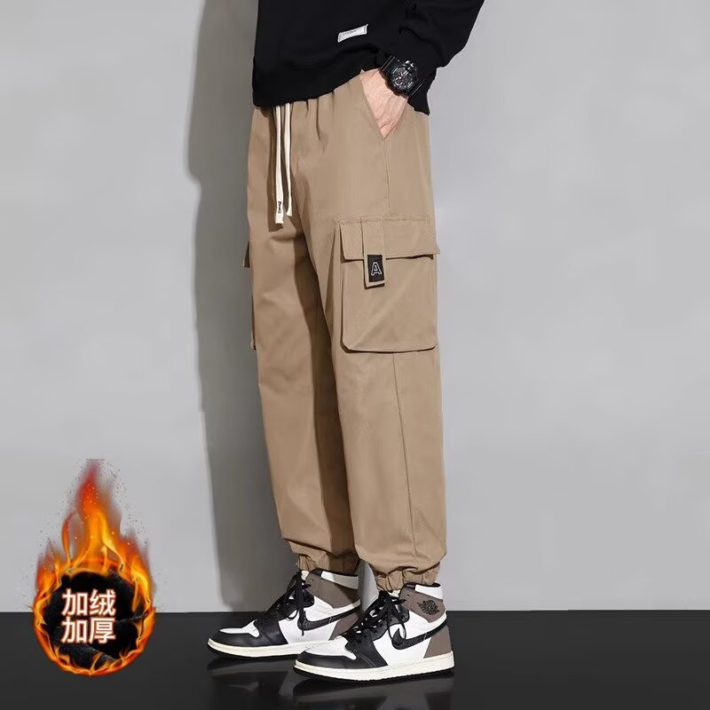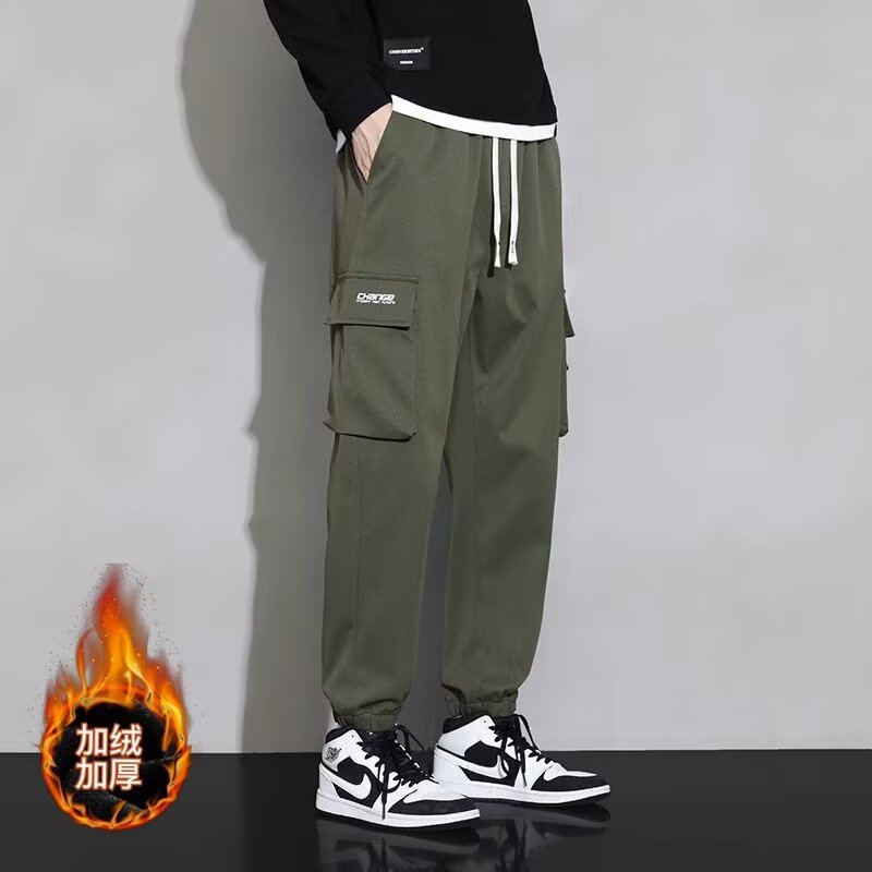 기모 두꺼운 바지 남자 가을 겨울 유행 브랜드 인 다리 도구 캐주얼 바지 남자 올 매치 스트레이트 바지