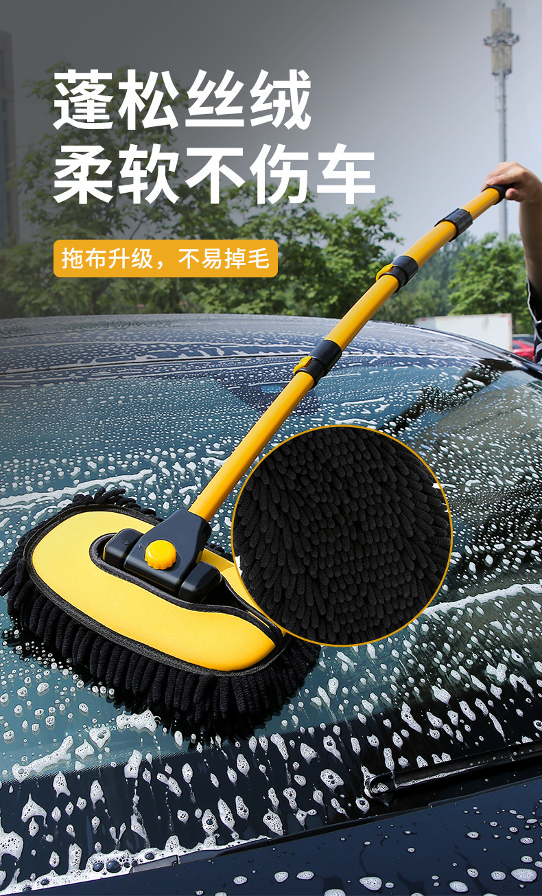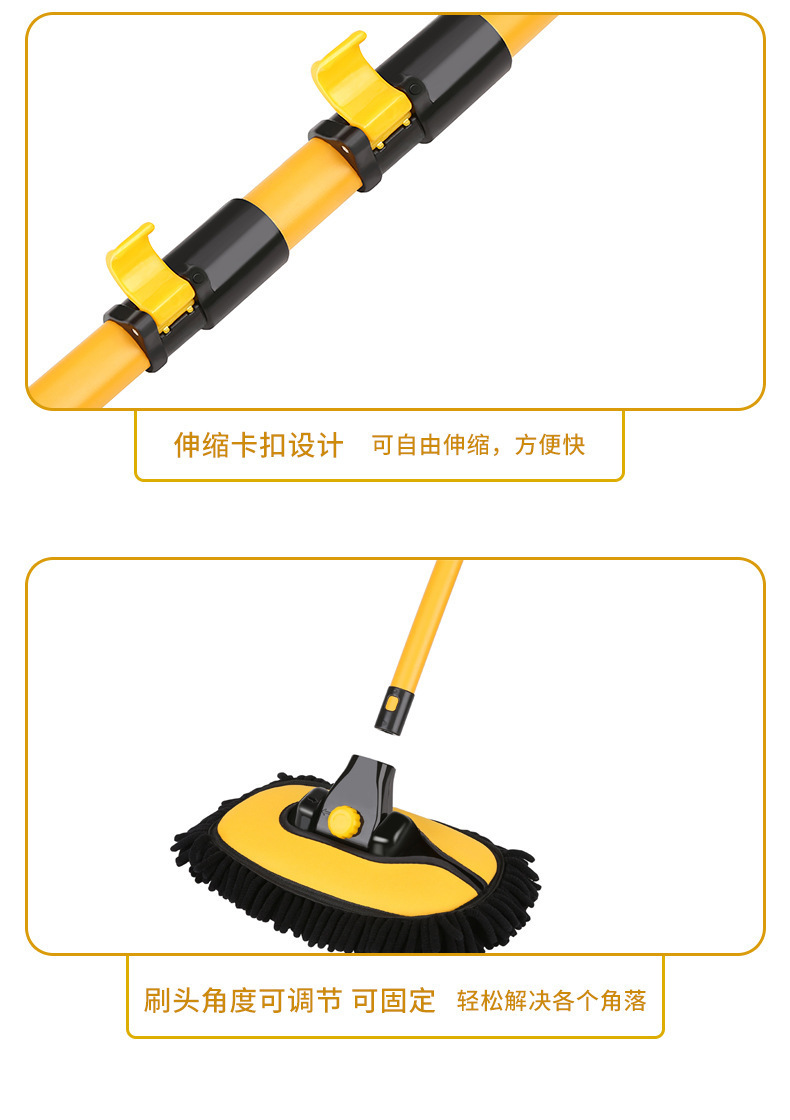 【套装清单】:黄黑四节拖把*1个、替换头*1个、30*60毛巾*1条、缝隙刷*1个