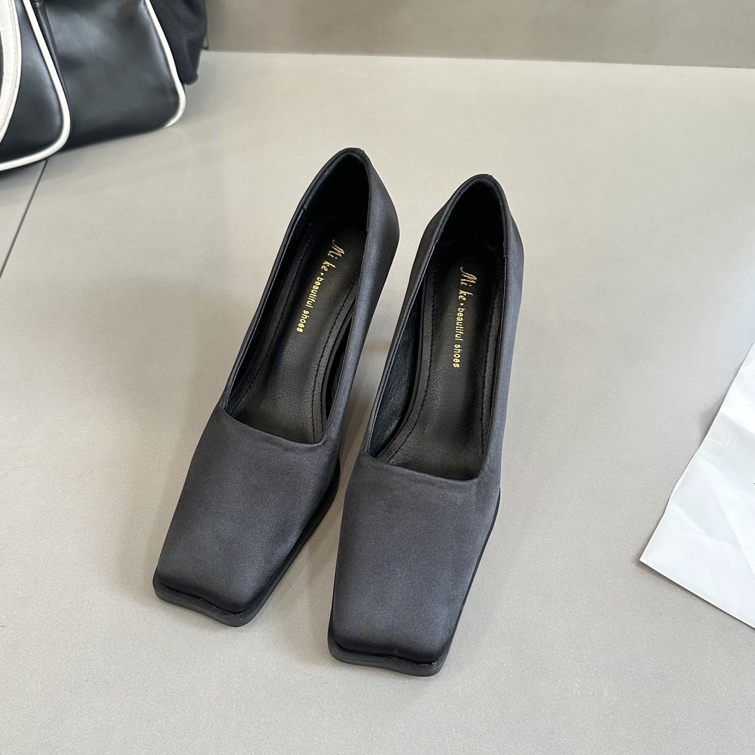 사각 발가락 블록 힐 로우 컷 싱글 레이어 신발
