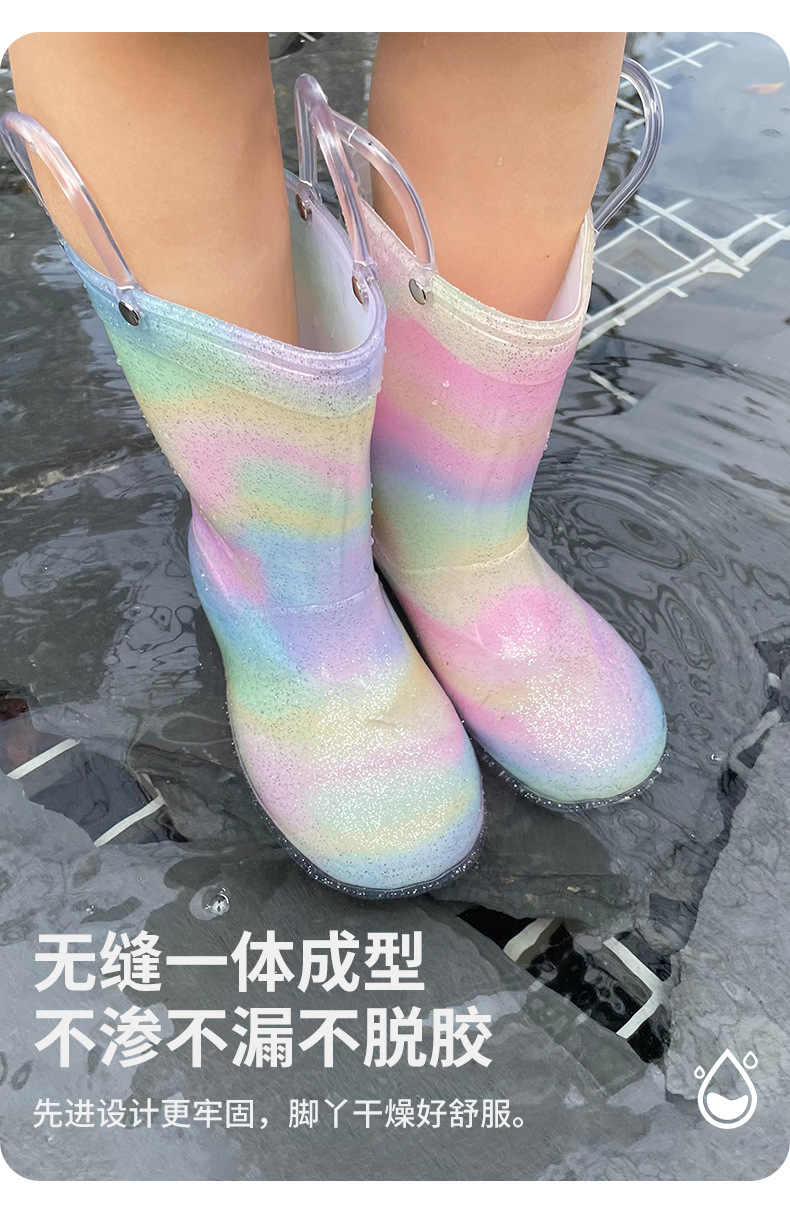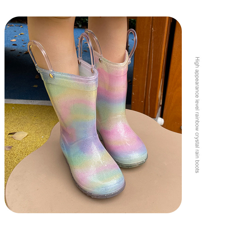 어린이 비 신발 Ins 외국 무역 소녀 장화 공주 하이 퀄리티 무지개 투명 중간 튜브 미끄럼 방지 물 신발 대형 어린이스토어 가기