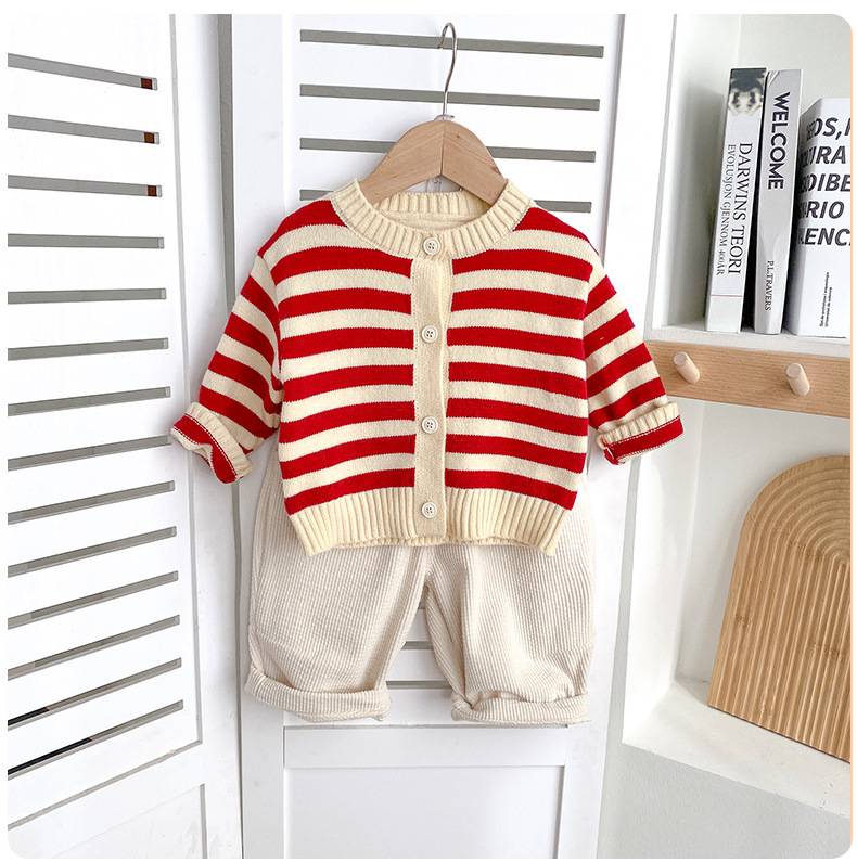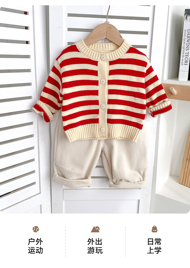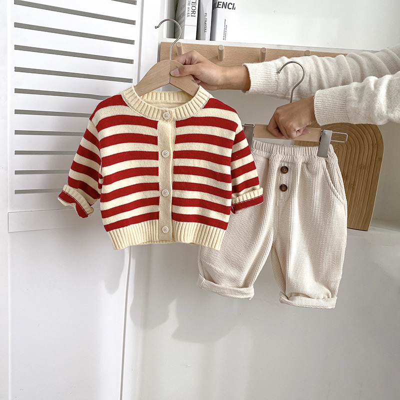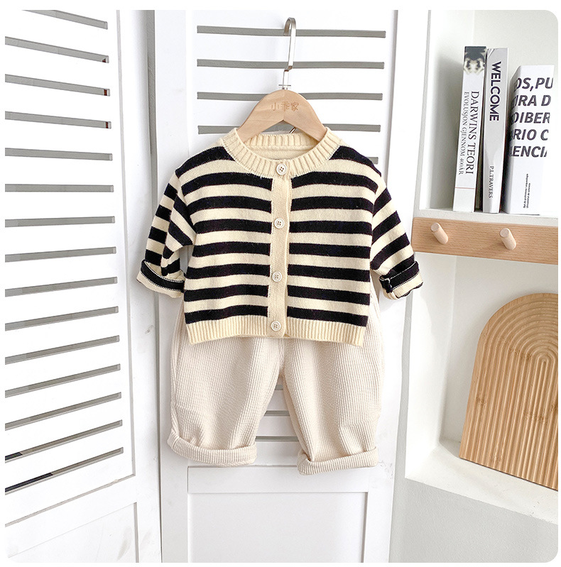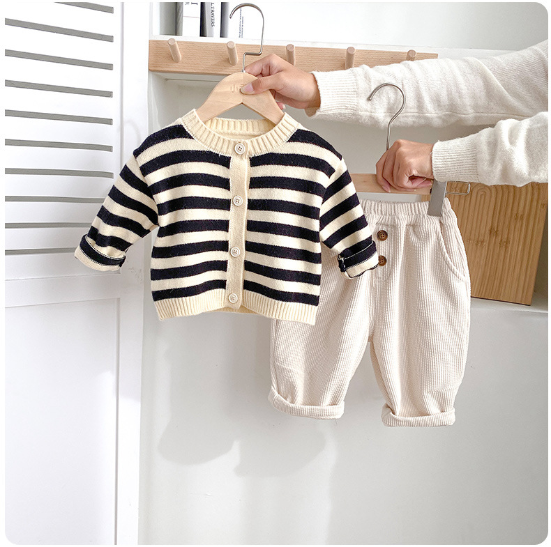 아기옷 세트 가을옷 남녀 아기 줄무늬 유아 봄 가을 1세 외출복 가을 스타일 투피스 세트스토어 가기