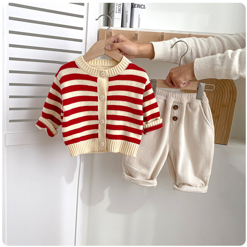 아기옷 세트 가을옷 남녀 아기 줄무늬 유아 봄 가을 1세 외출복 가을 스타일 투피스 세트
