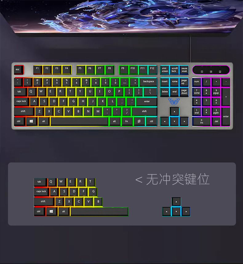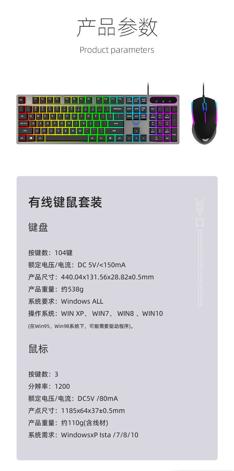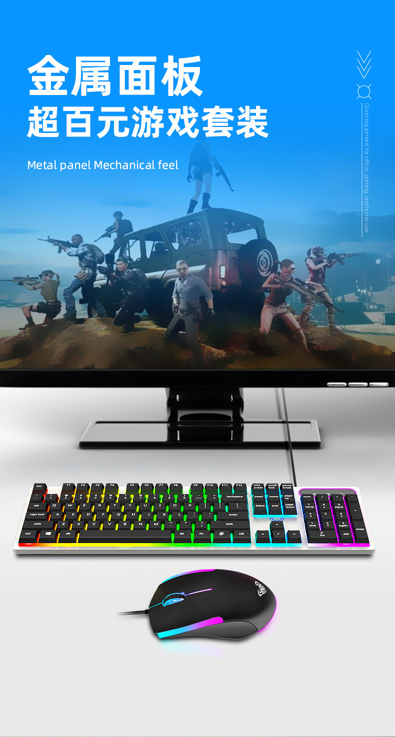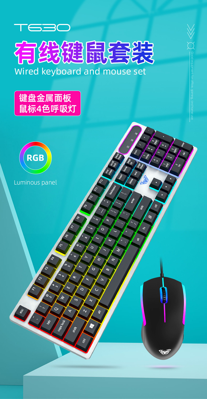 AULA/Tarantula T630 유선 게임 빛나는 키보드 마우스 세트 USB 전기 경쟁 기계적 느낌 금속 패널 무게스토어 가기