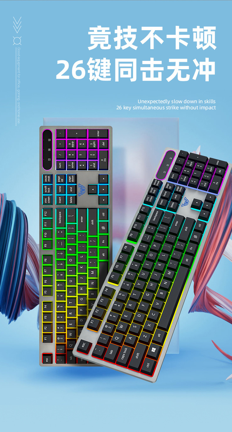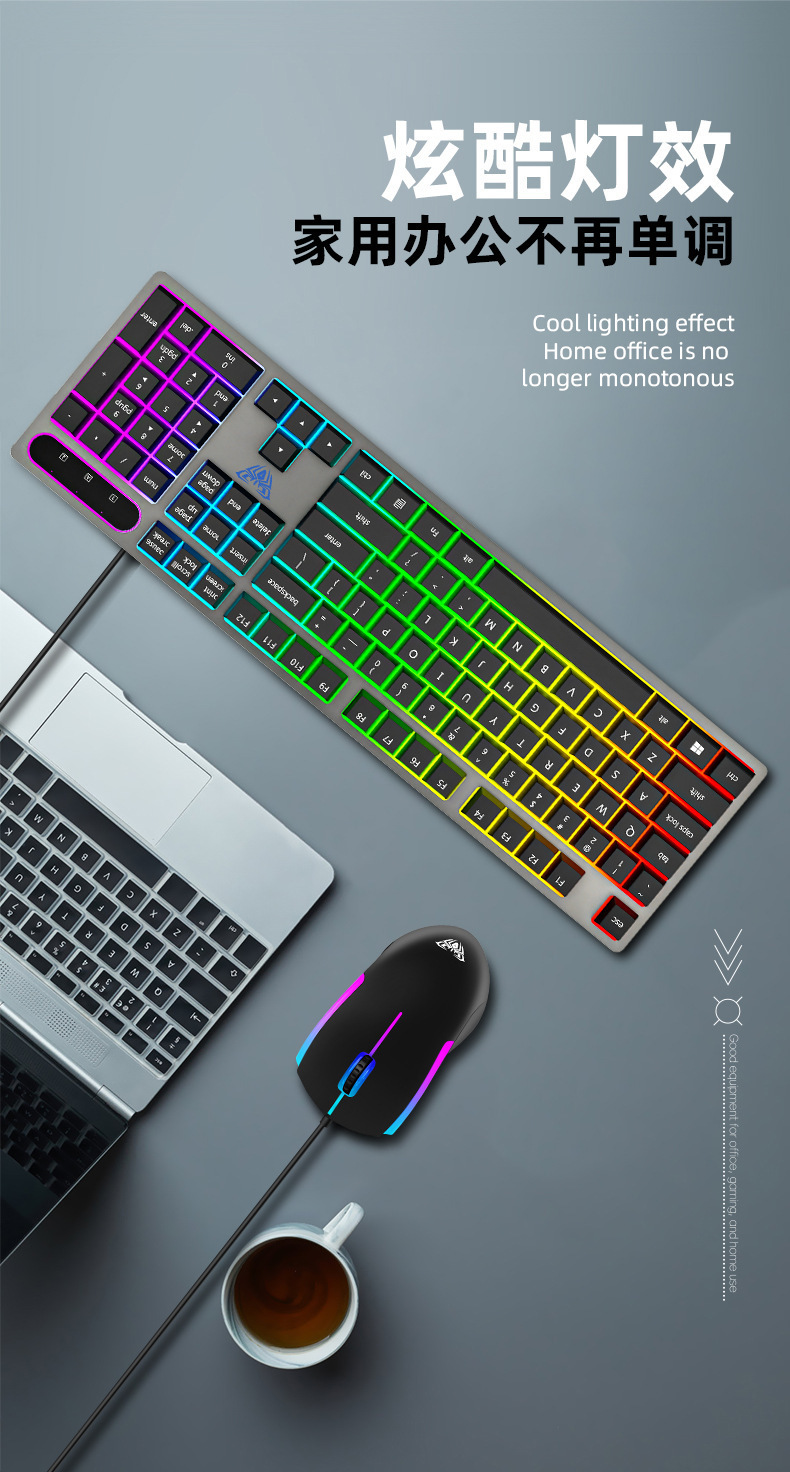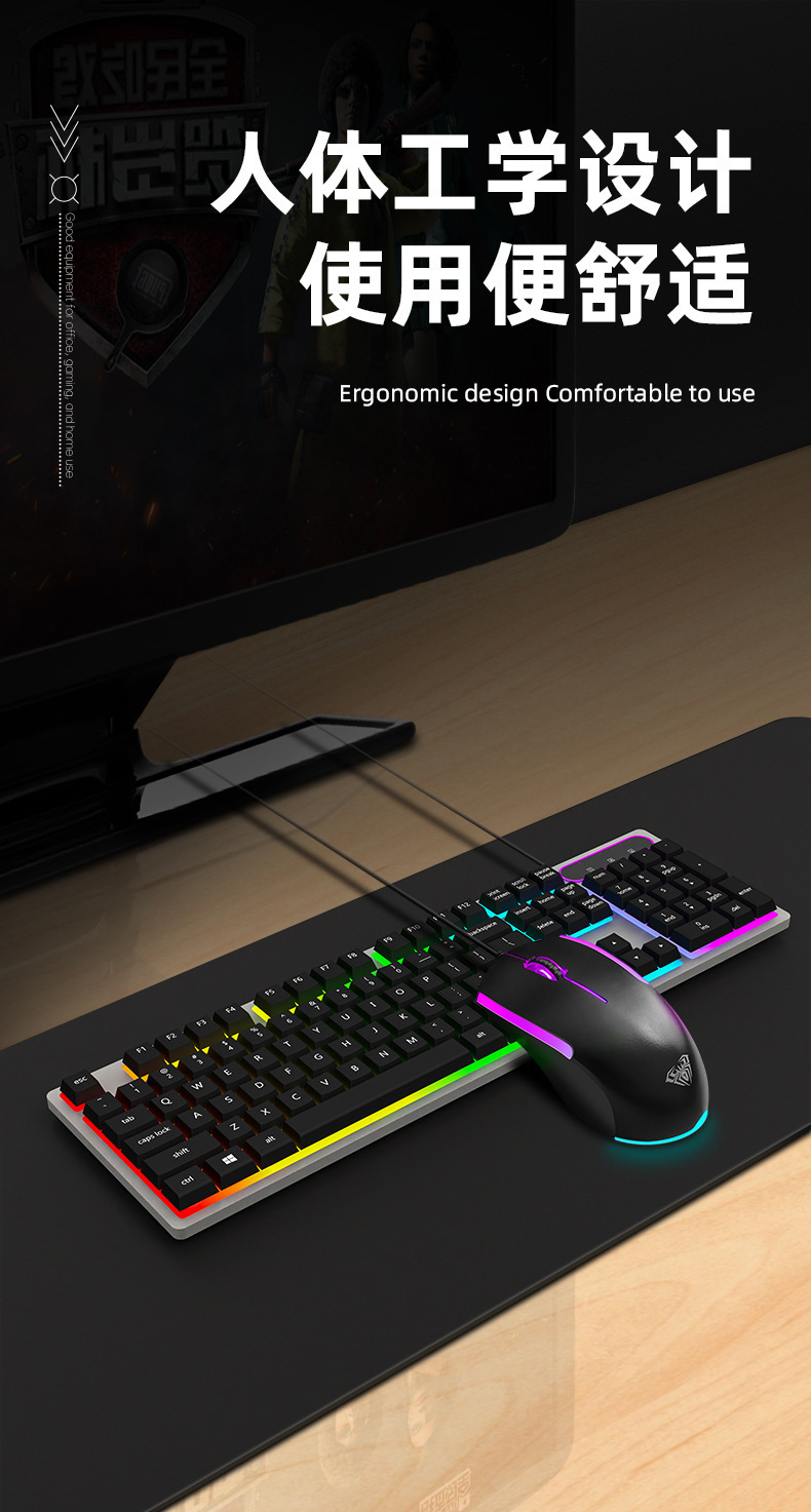 AULA/Tarantula T630 유선 게임 빛나는 키보드 마우스 세트 USB 전기 경쟁 기계적 느낌 금속 패널 무게