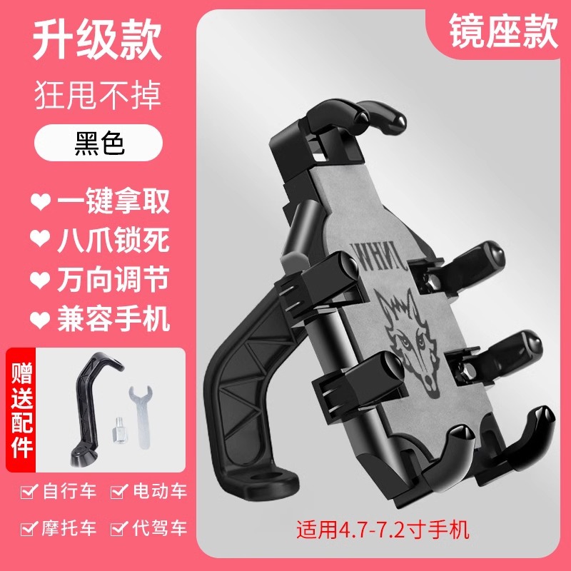 • [더 강하게 업그레이드] 블랙(백미러 모델) ✅ 한 손으로 들고 놓기 ⭐ 라이딩 제로 지터