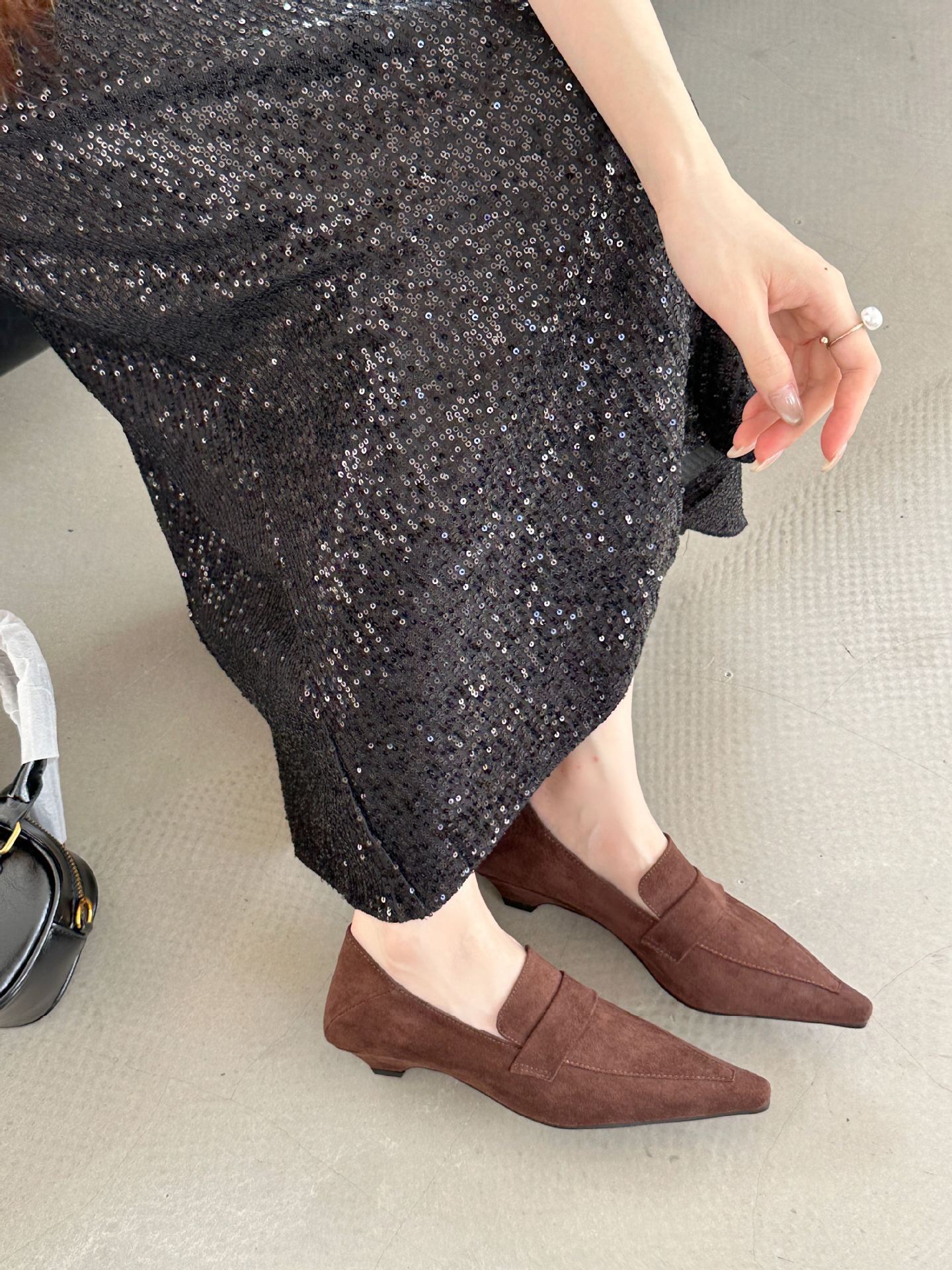 2025 새로운 봄 깊은 입 싱글 신발 레트로 작은 광장 헤드 작은 슬로프 높은 스키니 스웨이드 소프트 단독 신발스토어 가기