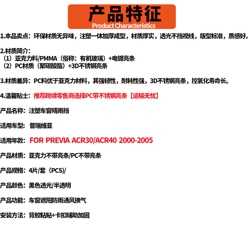 Toyota TOYOTA Previa 창 바이저 자동차 창 써니 비 방패 비 눈썹에 적합스토어 가기