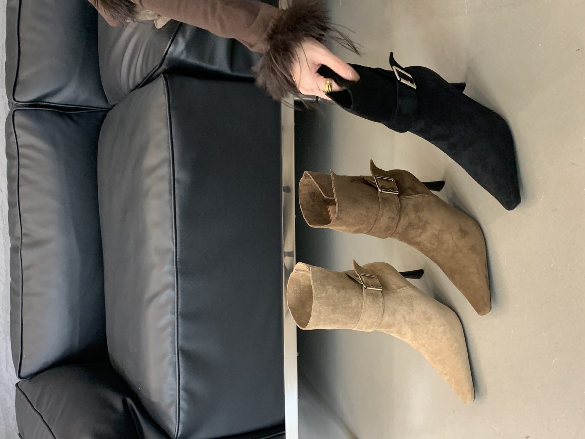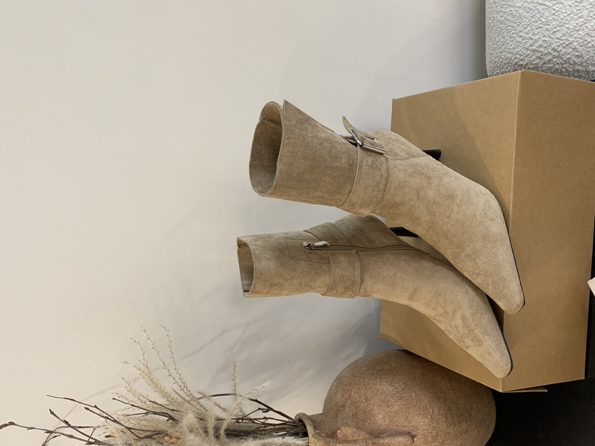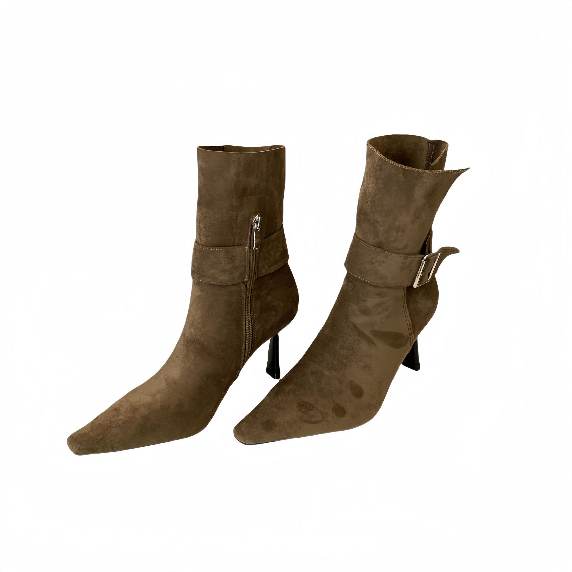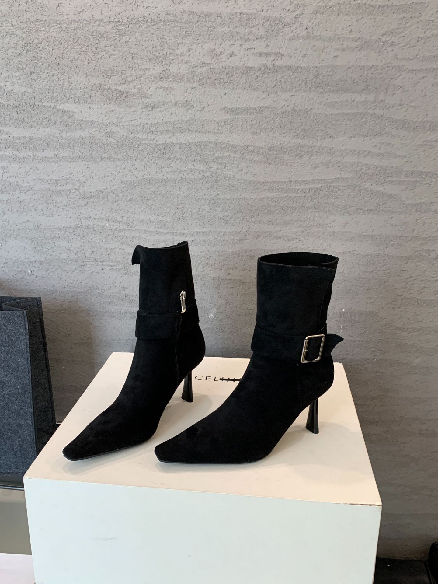 뾰족한 하이힐 카키 힙 부츠 중간 배럴 기사 부츠 여성 신발 2024 새로운 봄 가을 겨울 얇은 부츠스토어 가기