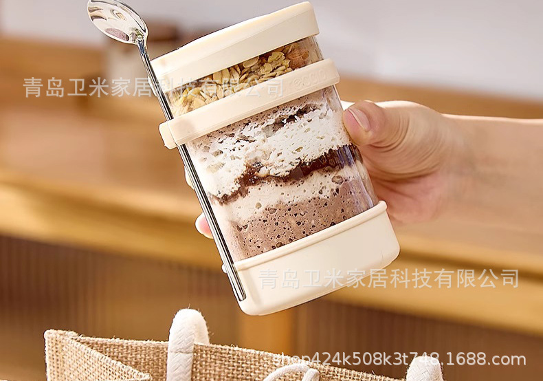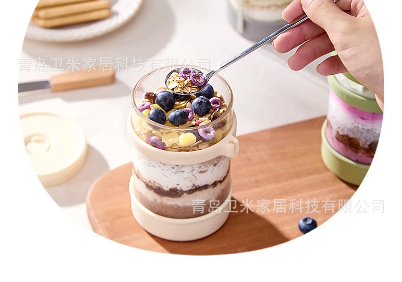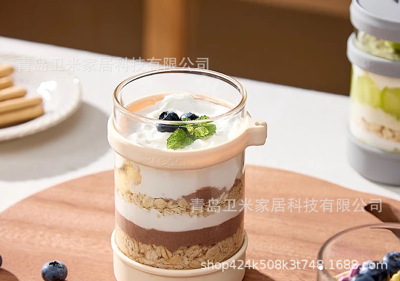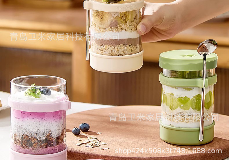 뚜껑과 스푼이 있는 오트밀 컵, 오버나이트 요거트 과일 아침식사 컵, 고온에 강한 휴대용 유리 우유컵스토어 가기