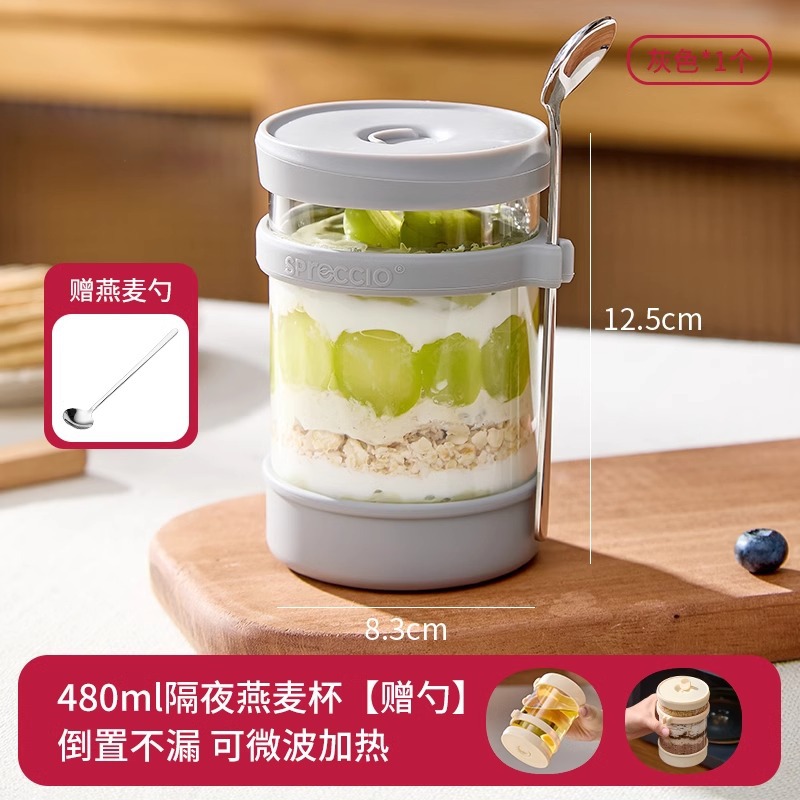 • 오버나이트 오트밀컵 [그레이] + [프리스푼]