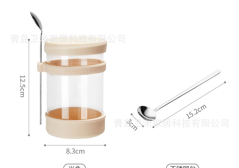 뚜껑과 스푼이 있는 오트밀 컵, 오버나이트 요거트 과일 아침식사 컵, 고온에 강한 휴대용 유리 우유컵