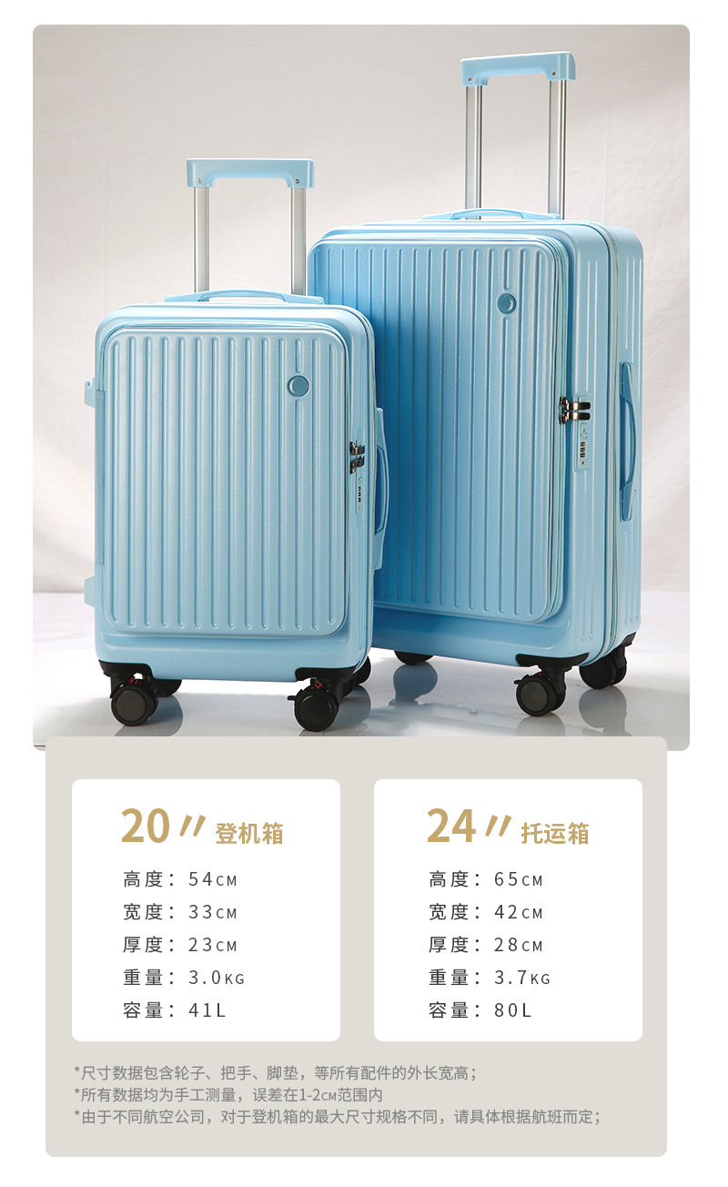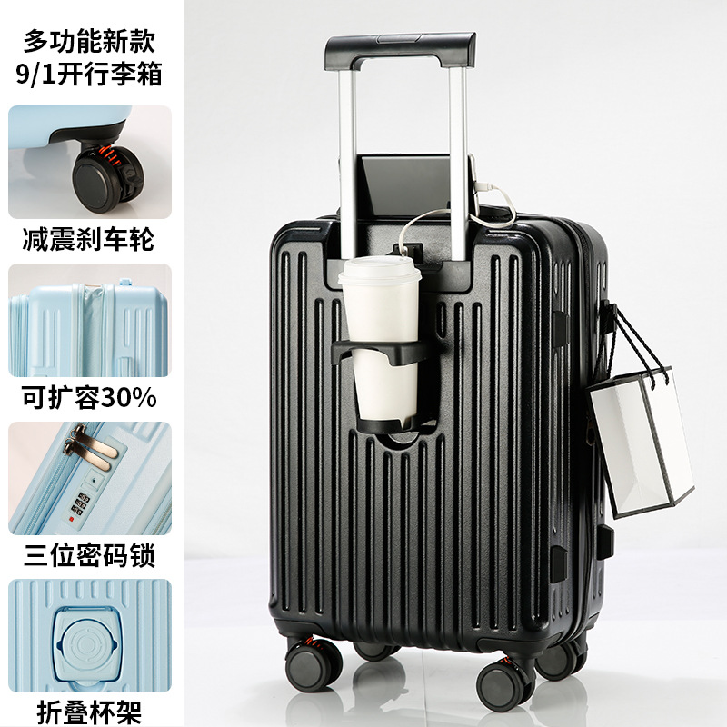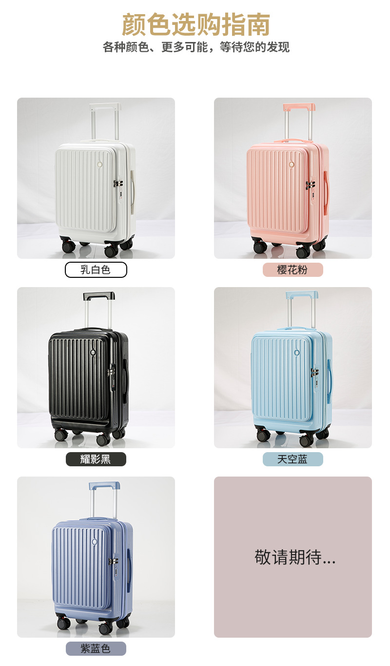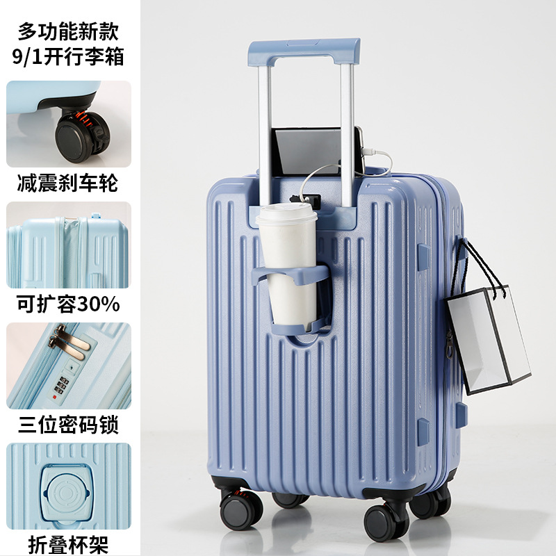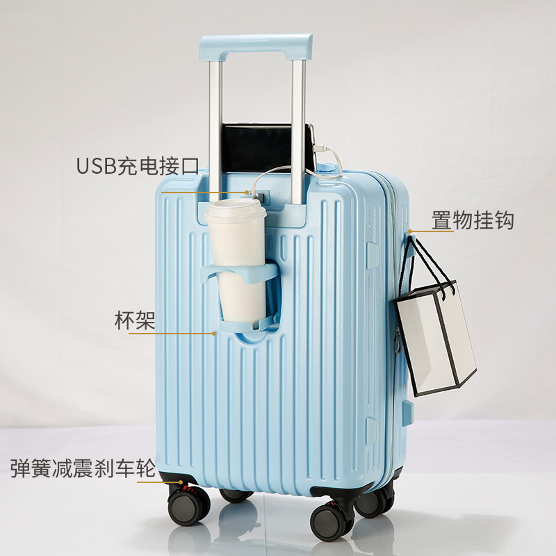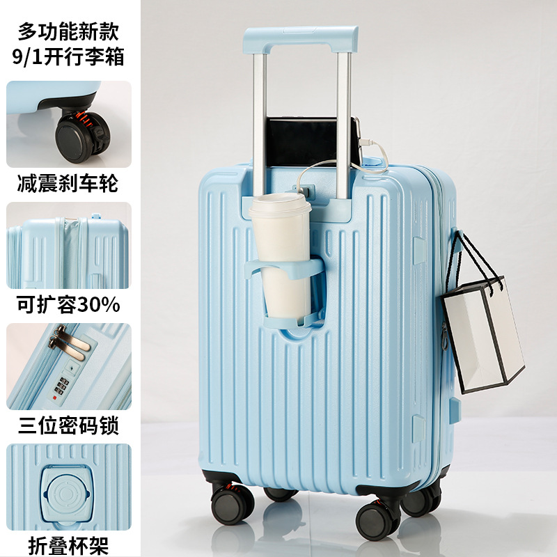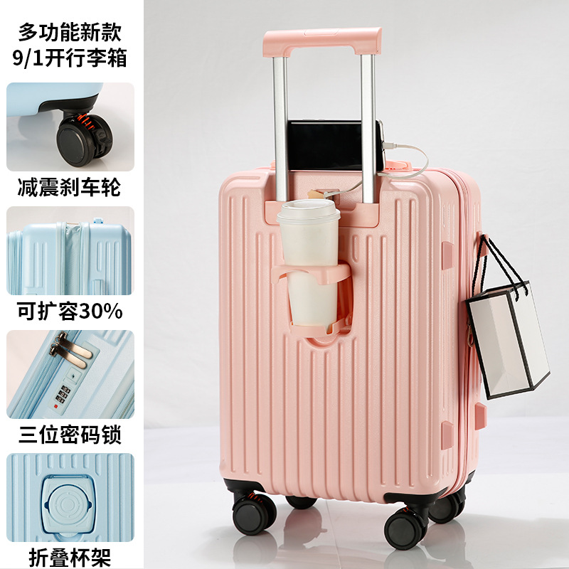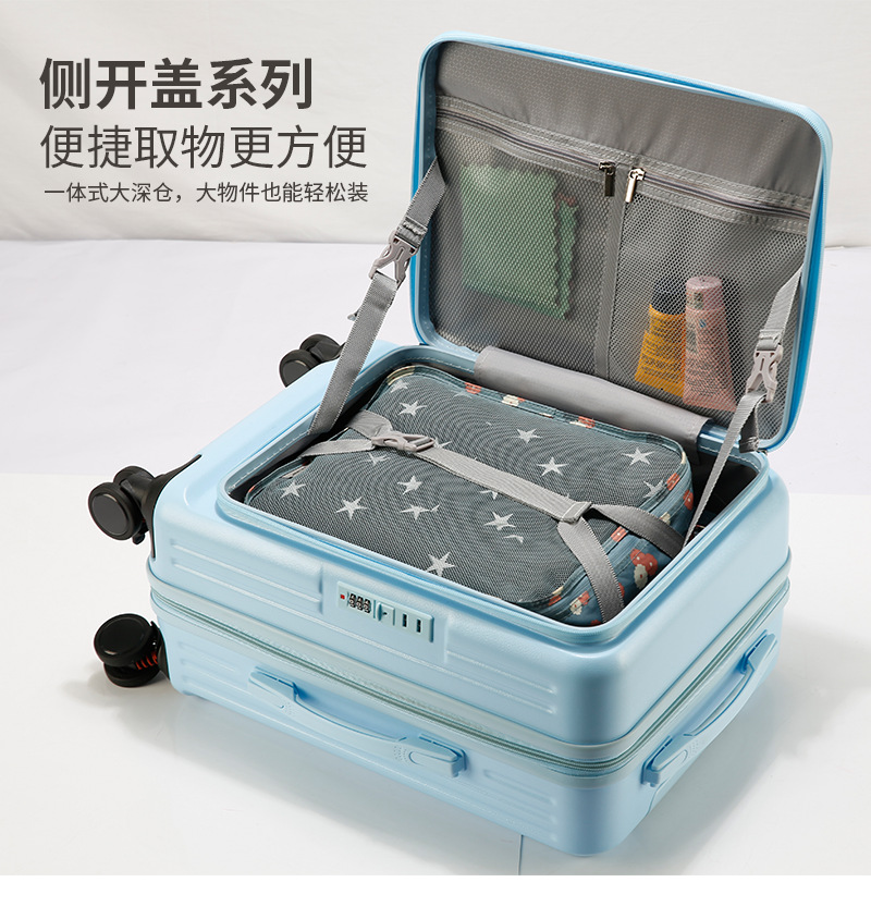 사이드 오프닝 수하물 케이스 여성의 2024 새로운 가방 20 인치 확장 가능한 트롤리 케이스 안티 드롭 암호 상자 다기능