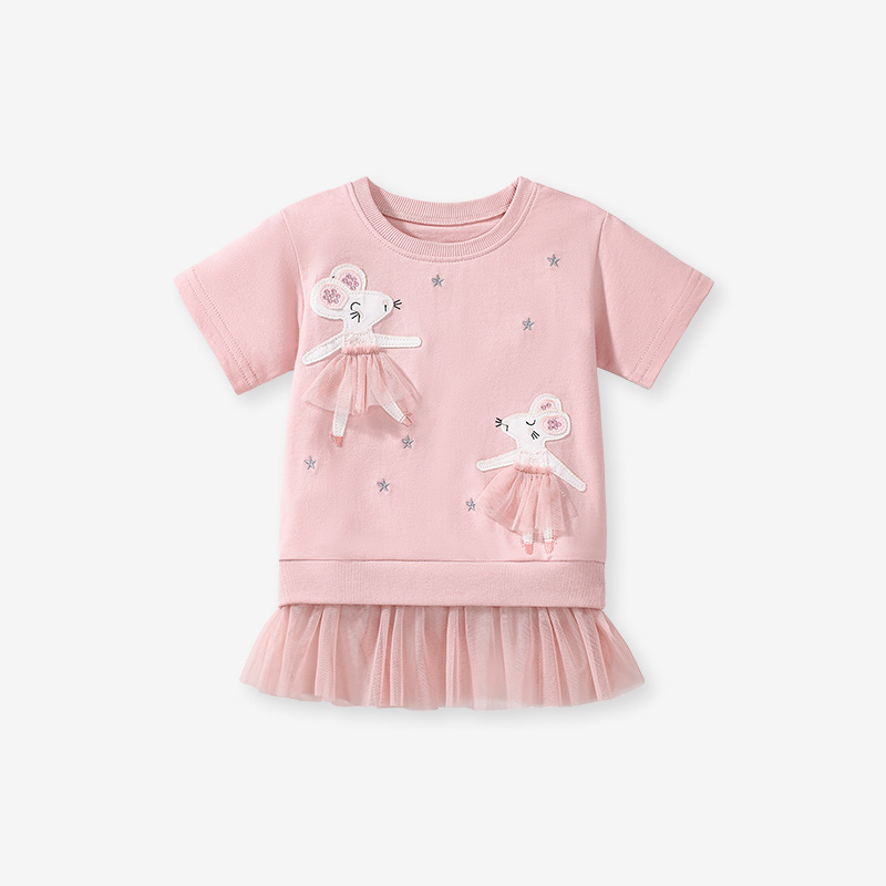 여자 반팔 티셔츠 여름 긴 메쉬 스티칭 만화 대외 무역 면화 반팔 티셔츠 머리카락 세대스토어 가기