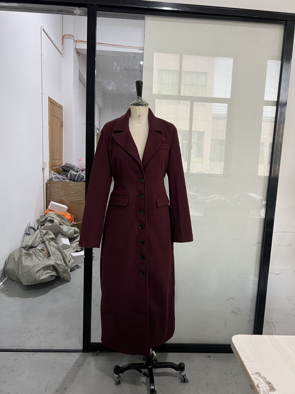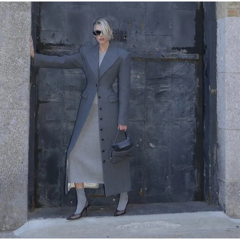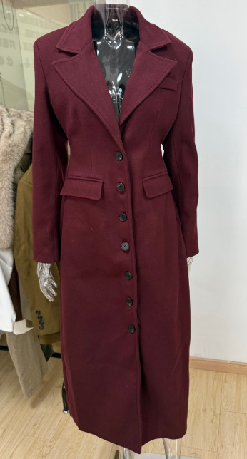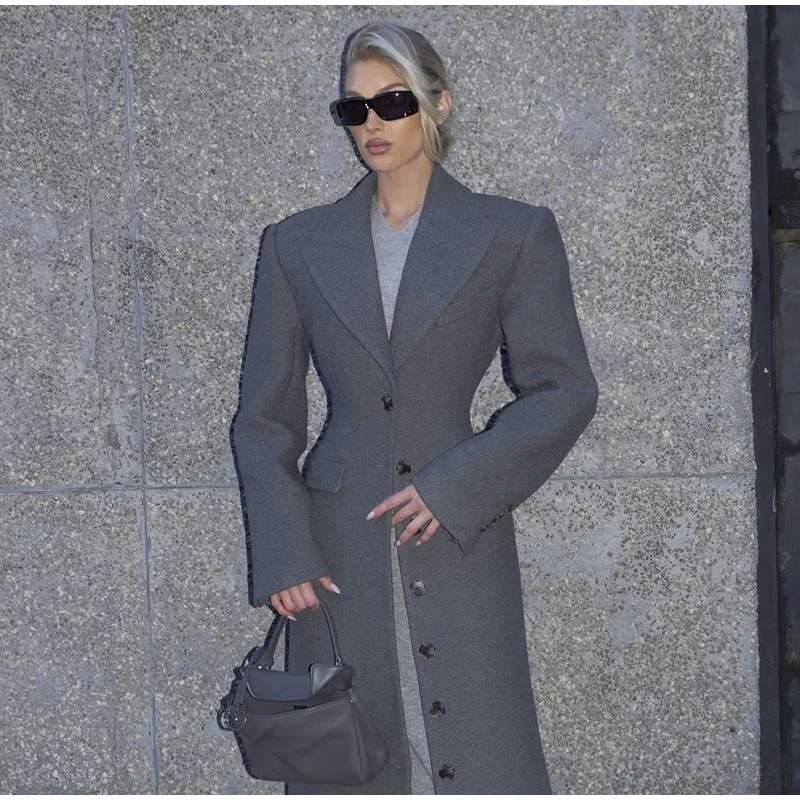 유럽과 미국의 국경 2025 봄 여성 모직 코트 우아한 옷깃 높은 허리 긴 모직 코트스토어 가기