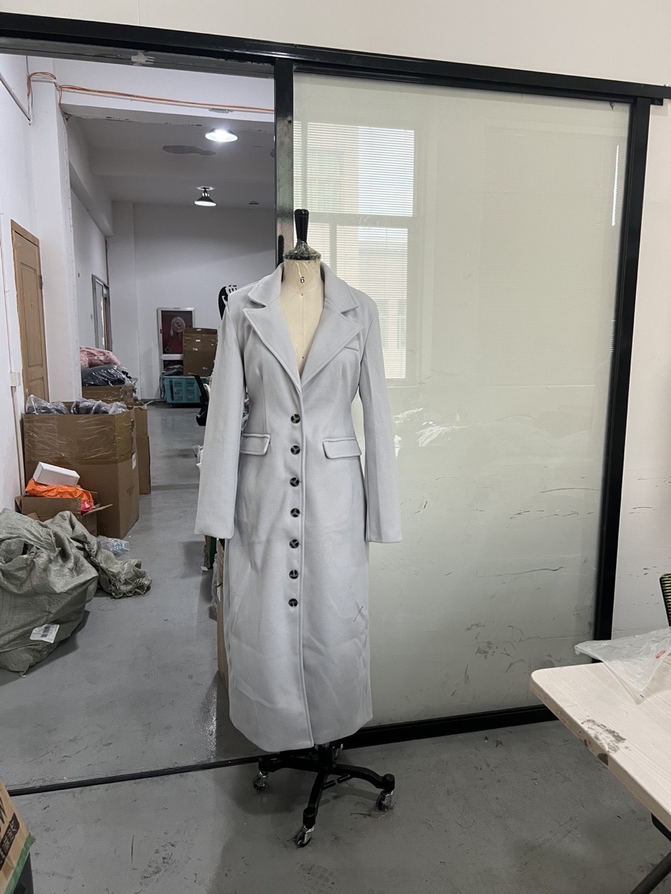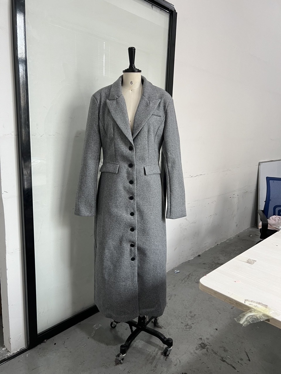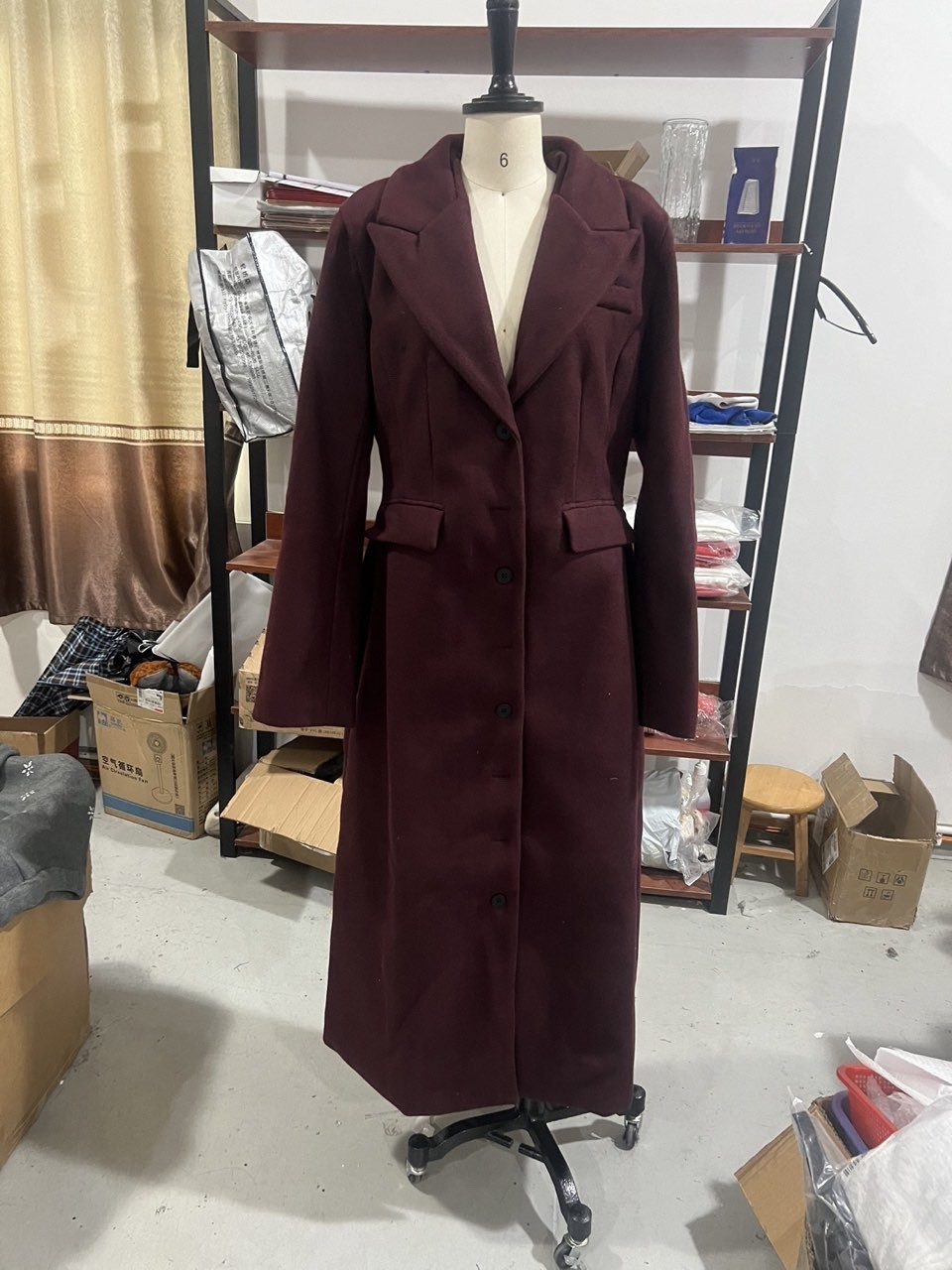 유럽과 미국의 국경 2025 봄 여성 모직 코트 우아한 옷깃 높은 허리 긴 모직 코트스토어 가기