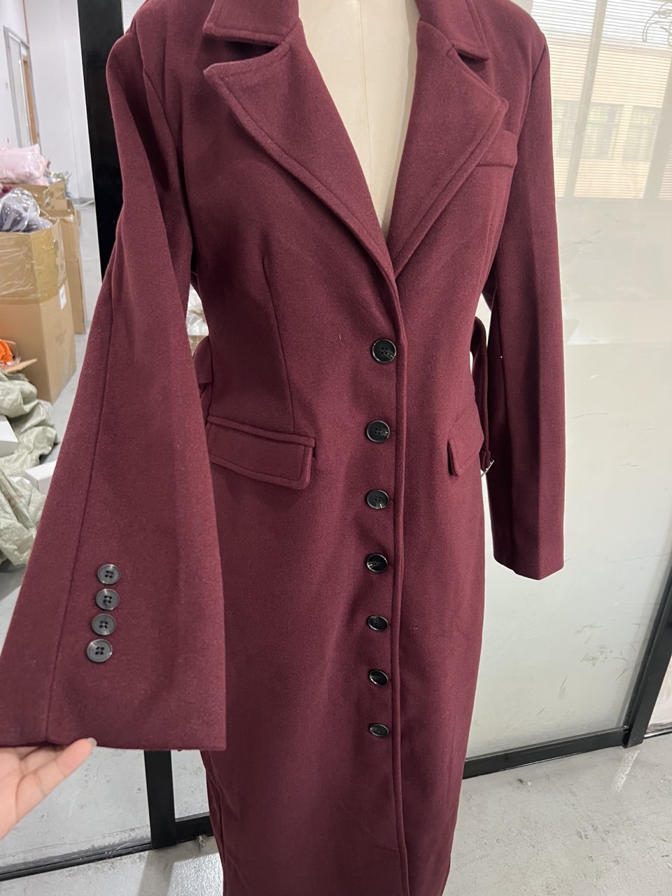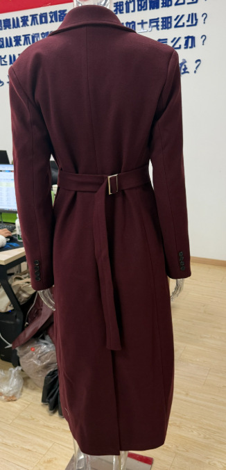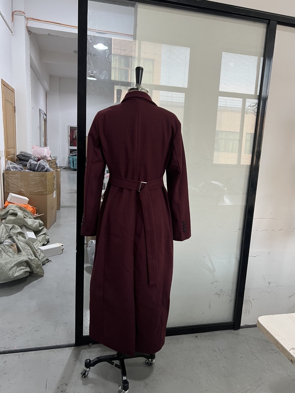 • 레이스업 웨이스트 롱 코트 - 다크 레드