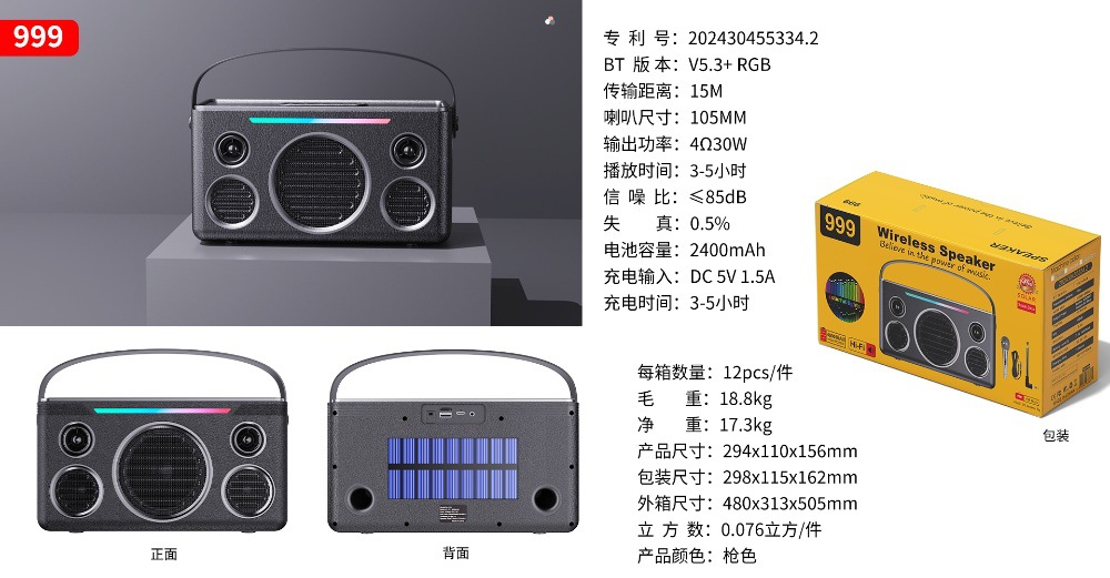 새로운 블루투스 스피커 복고풍 휴대용 태양 다기능 고전력 라디오 대외 무역 폭발 공장 직접 배치스토어 가기