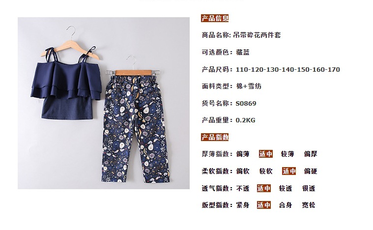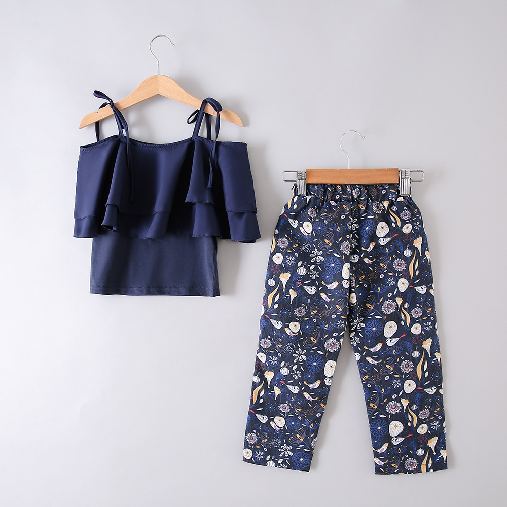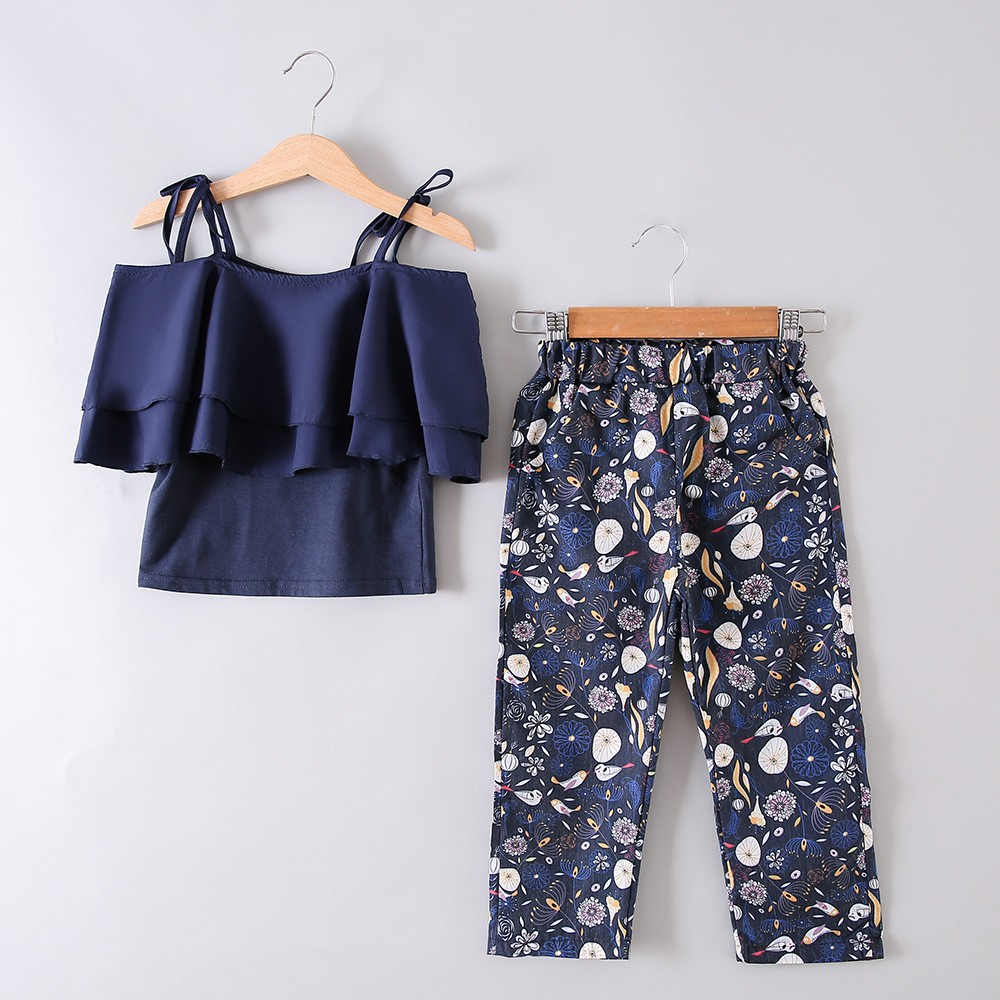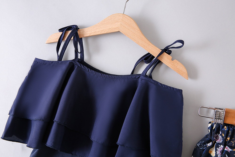 한국 스타일 아동복 여아 여름옷 2025 신상 유행 꽃무늬 끈나시 쉬폰 투피스 세트