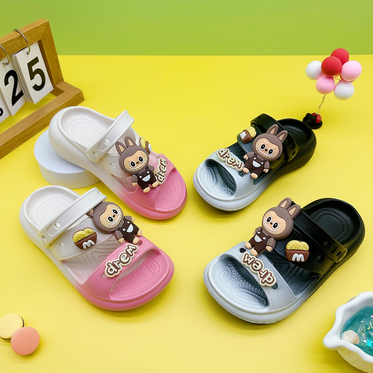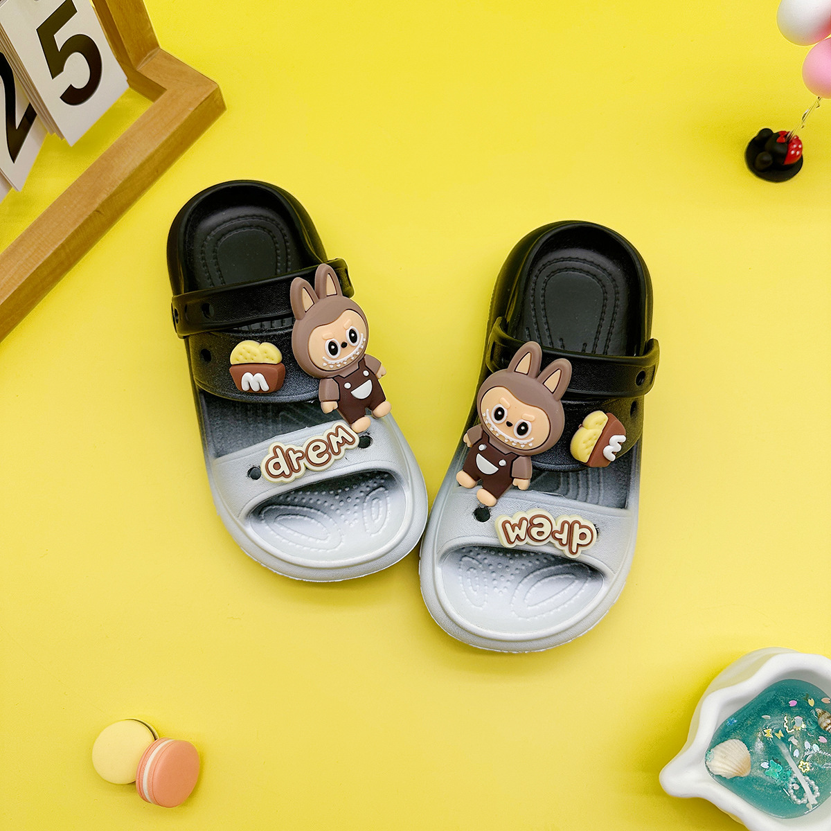 패션 폭발 만화 편지 랩 피복 부모-자식 슬리퍼 새로운 플랫 단독 소년과 소녀 미끄럼 방지 소프트 솔 샌들