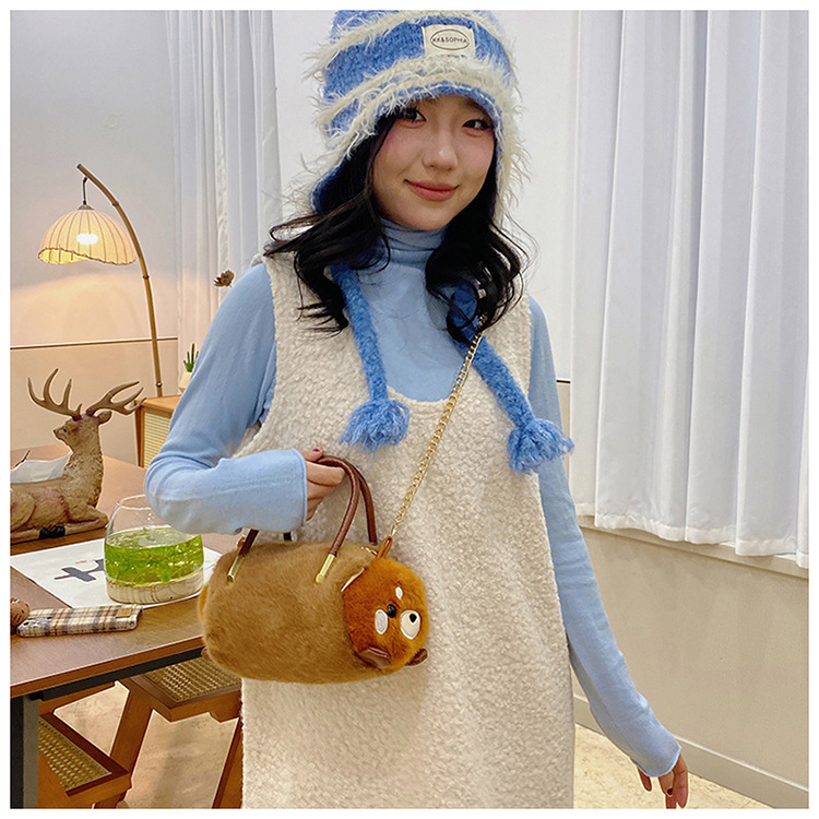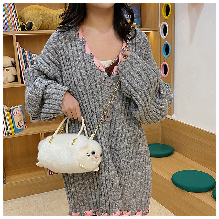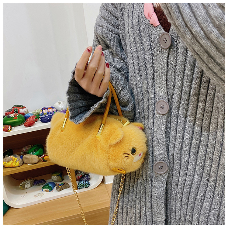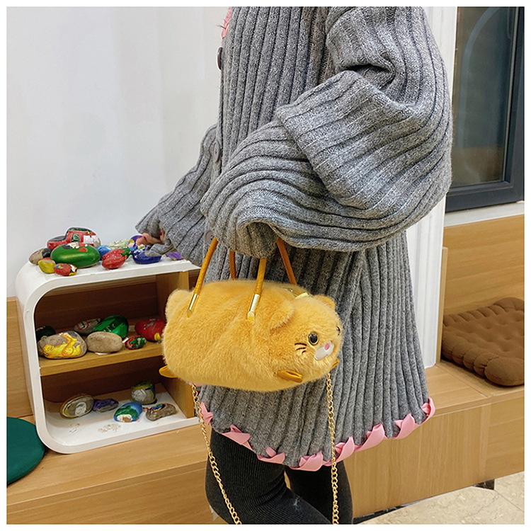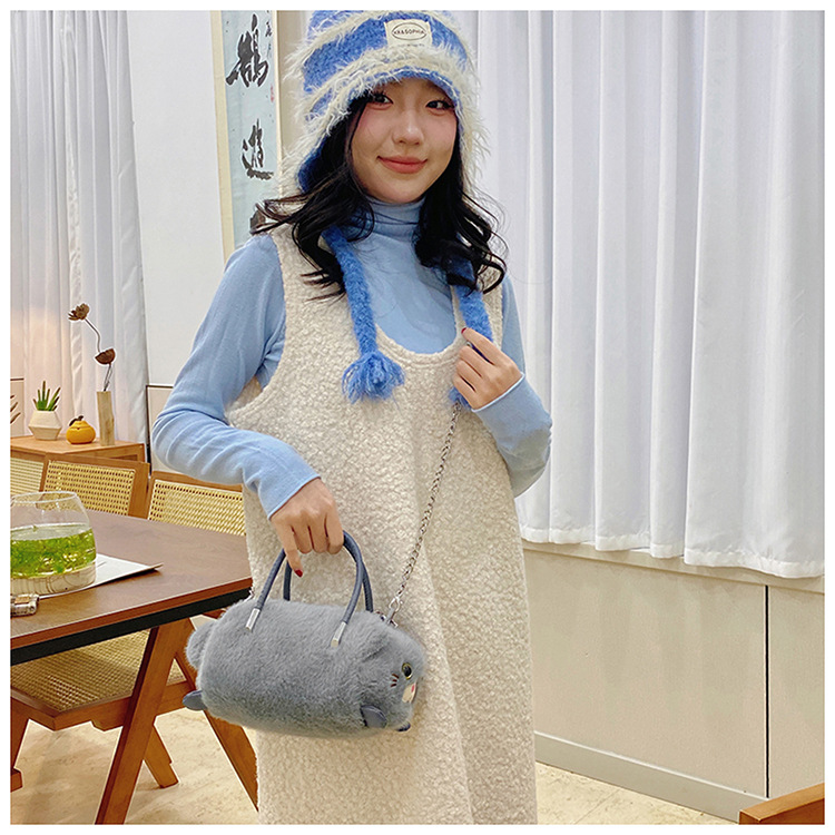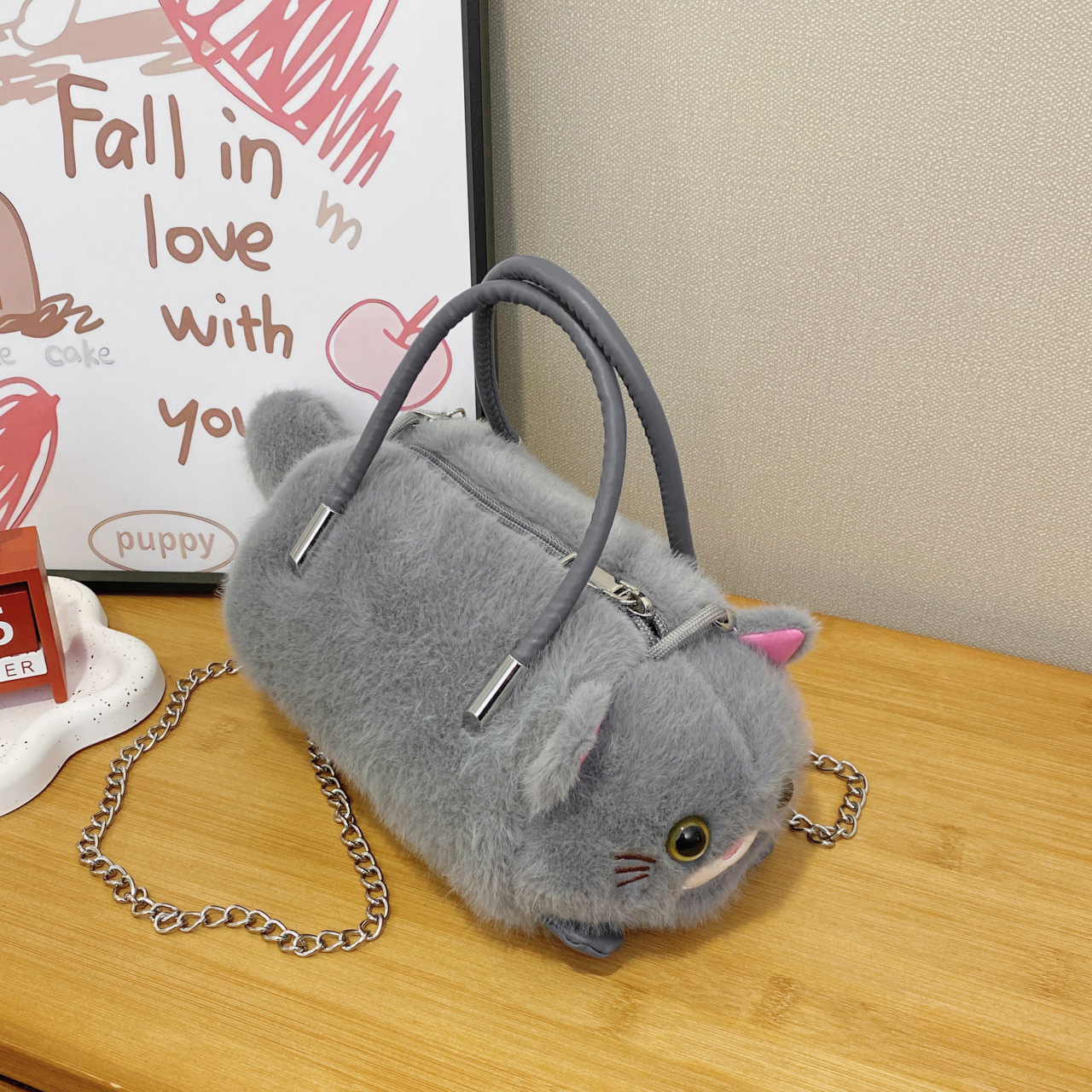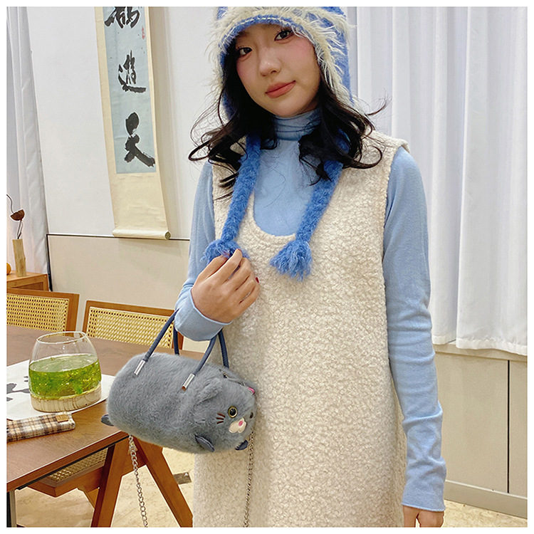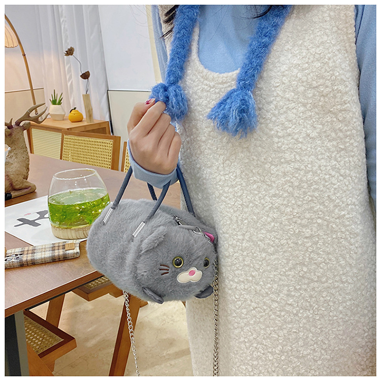 가을과 겨울 만화 봉제 어린이 가방 귀여운 고양이 발톱 부드러운 자매 체인 어깨 메신저 가방 소녀 동전 지갑 도매스토어 가기
