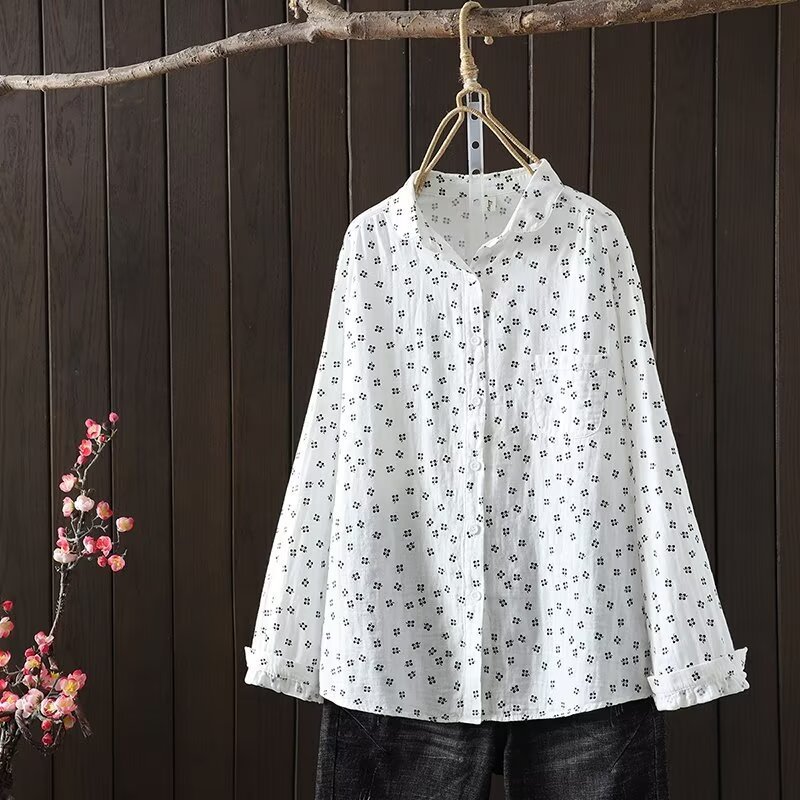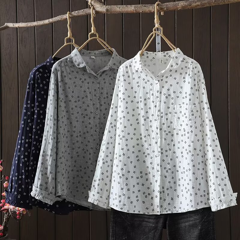 2025 봄 의상 만화 인쇄 더블 레이어 원사 여성용 카디건 긴 소매 셔츠 도매 느슨한스토어 가기