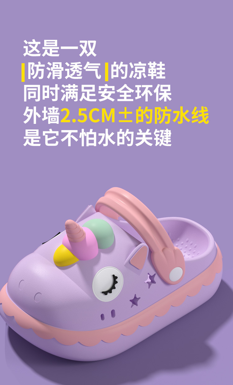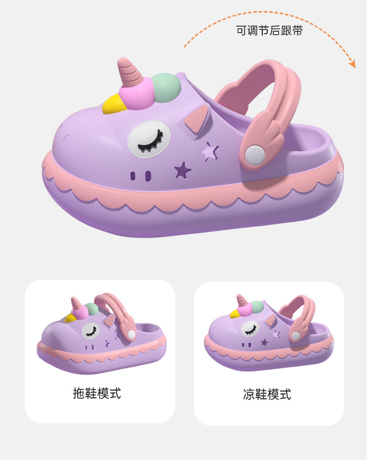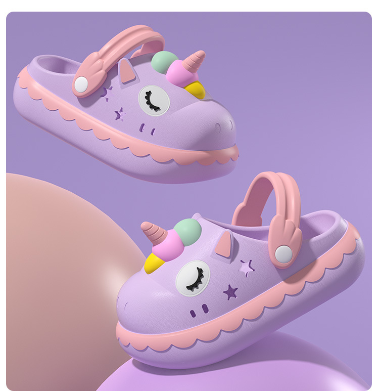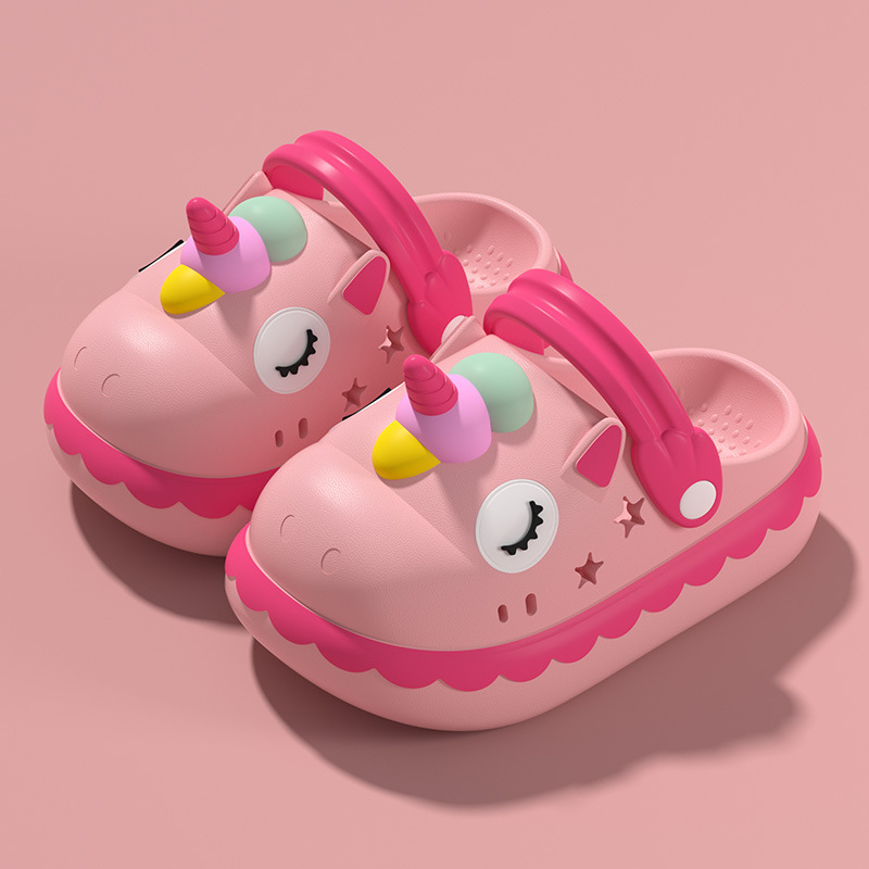 유니콘 소녀 슬리퍼 여름 공주 귀여운 만화 아기 키즈 실내 미끄럼 방지 소녀 구멍 신발
