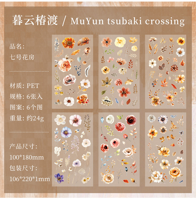 No.7 꽃 집 시리즈 방수 애완 동물 소재 스티커 식물 꽃 패턴 수제 DIY 장식 재료 종이 콜라주