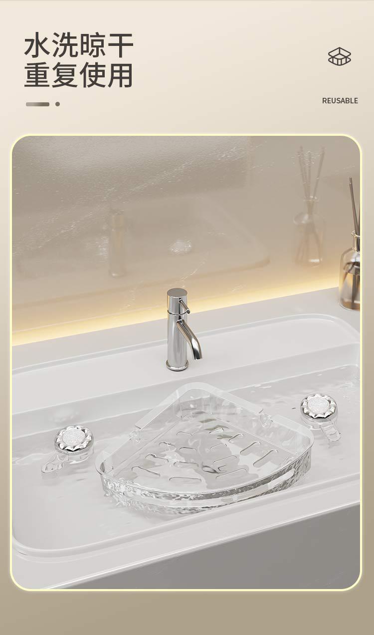 삼각형 흡입 컵 보관 랙 욕실 화장실 세면대 코너 선반 펀치없는 벽걸이 형 보관 랙
