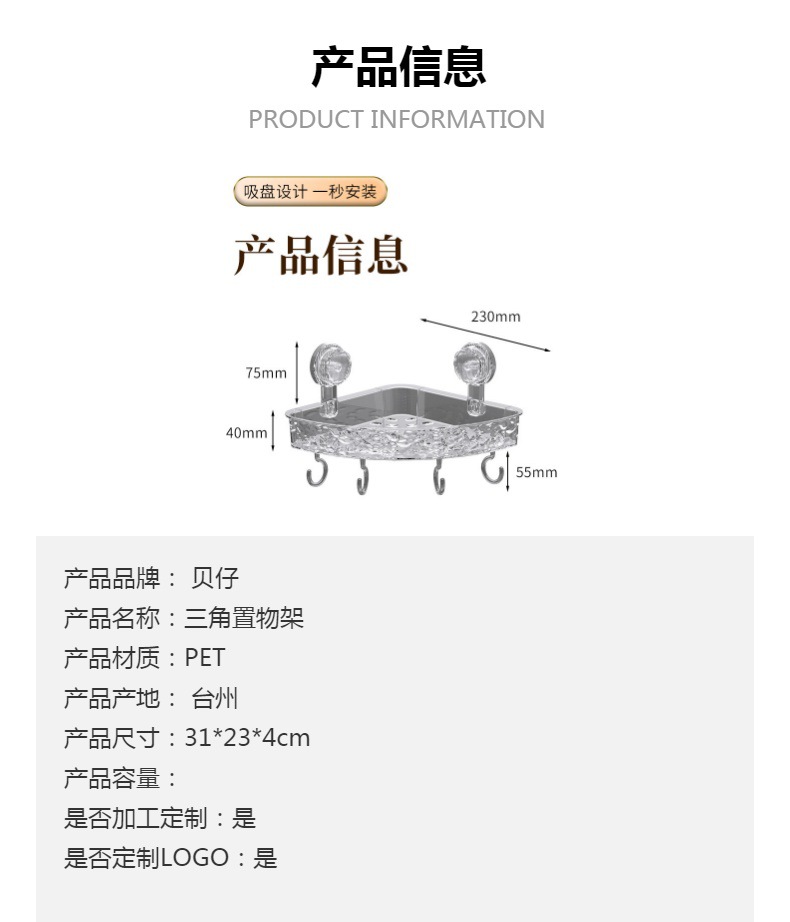 삼각형 흡입 컵 보관 랙 욕실 화장실 세면대 코너 선반 펀치없는 벽걸이 형 보관 랙스토어 가기