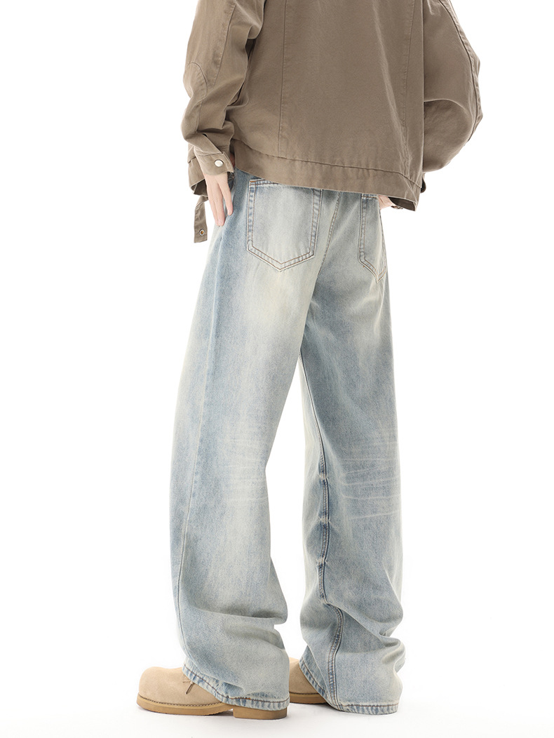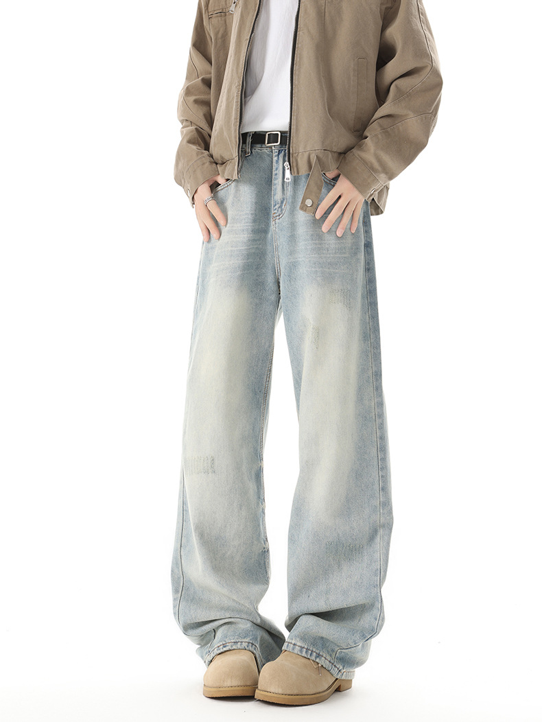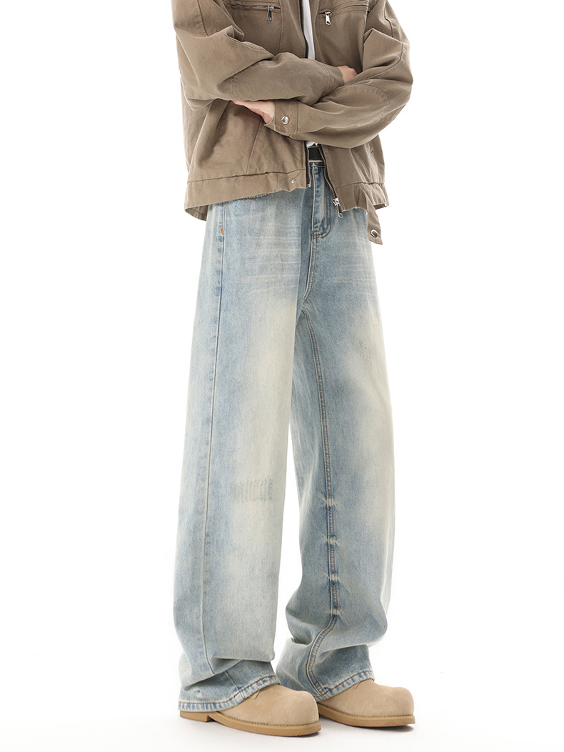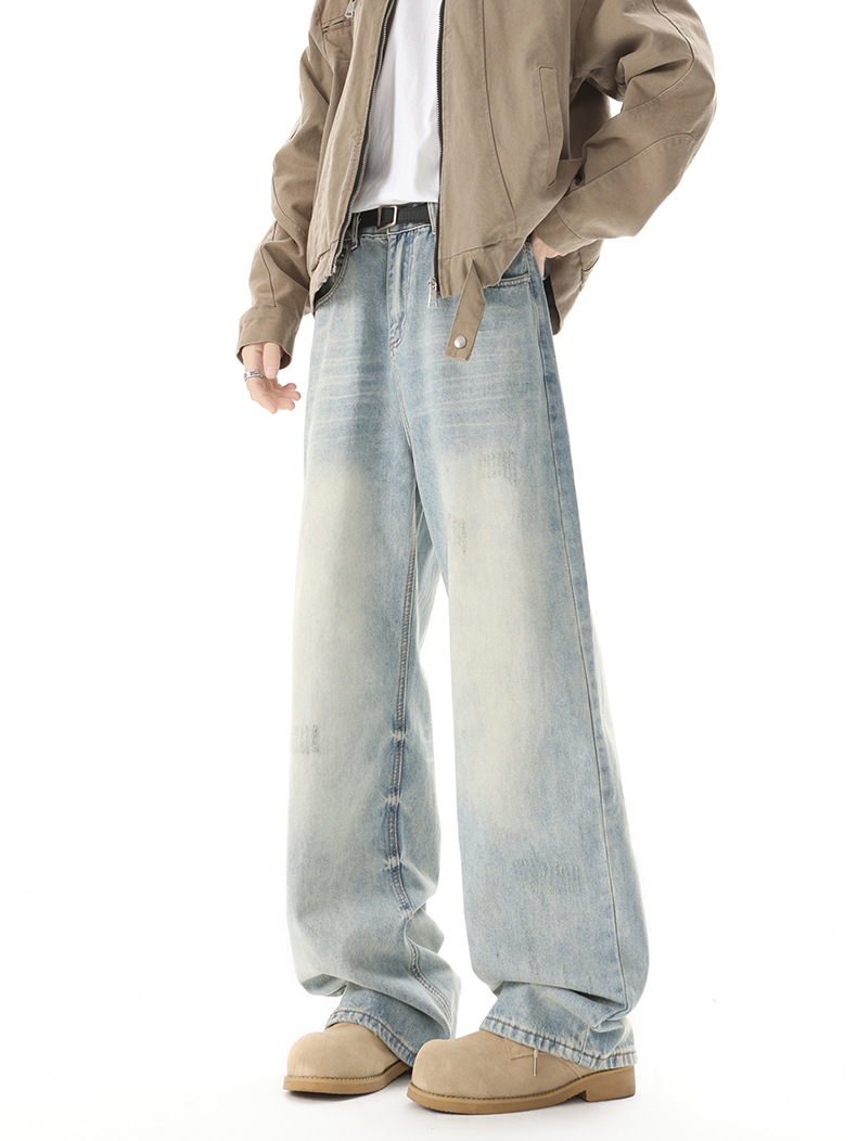Muqiu 남성복 ∠ 미국 하이 스트리트 타이 플라워 빈티지 세탁 청바지 남성용 루즈 스트레이트 레그 와이드 레그 캐주얼 팬츠스토어 가기