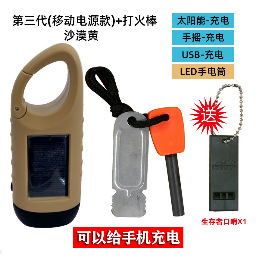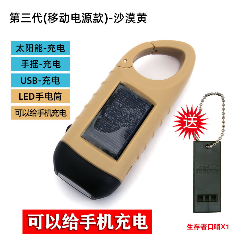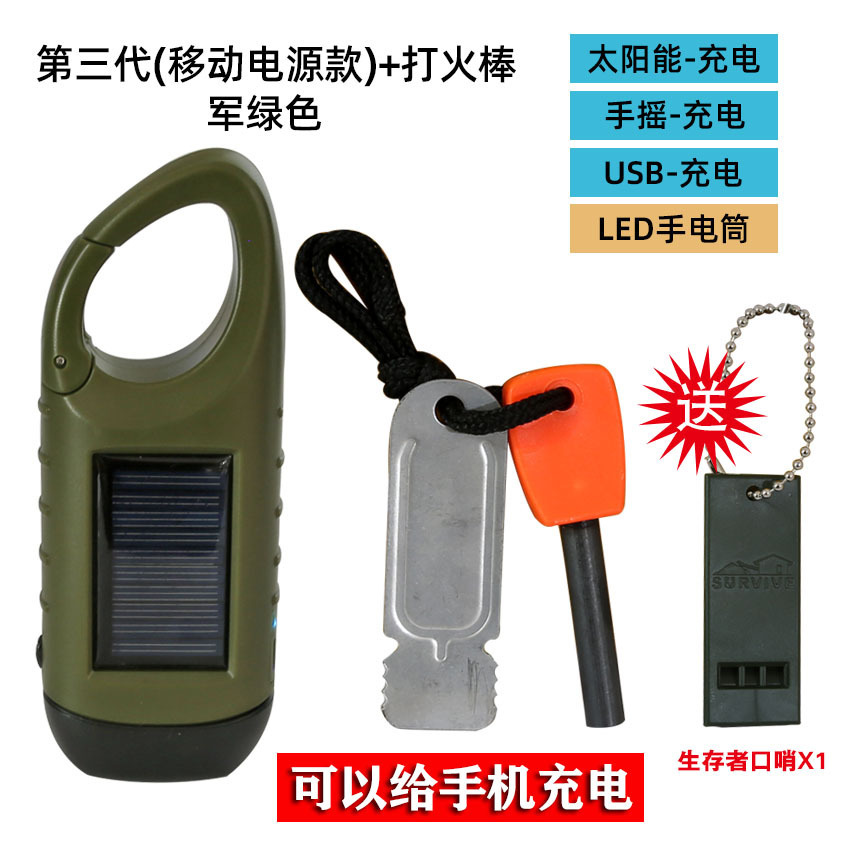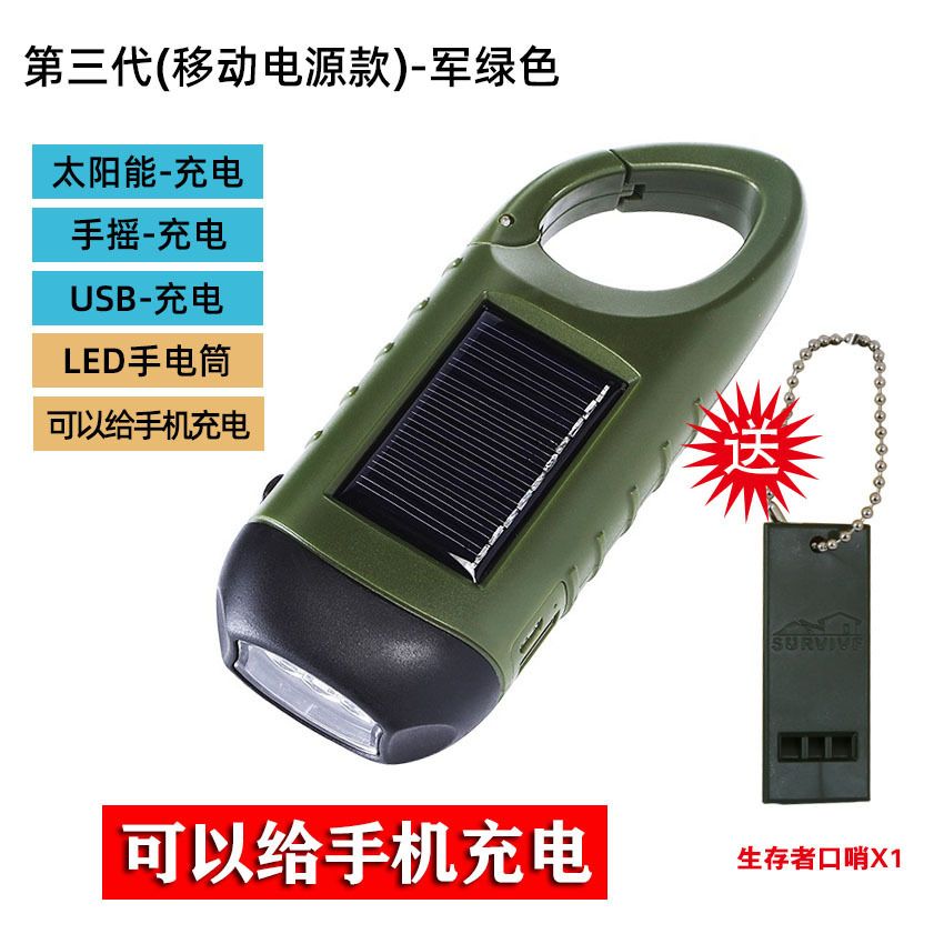 야외 핸드 크랭크 전원 손전등 태양 작은 손전등 충전 다기능 led 가정용 비상 방재 장비스토어 가기