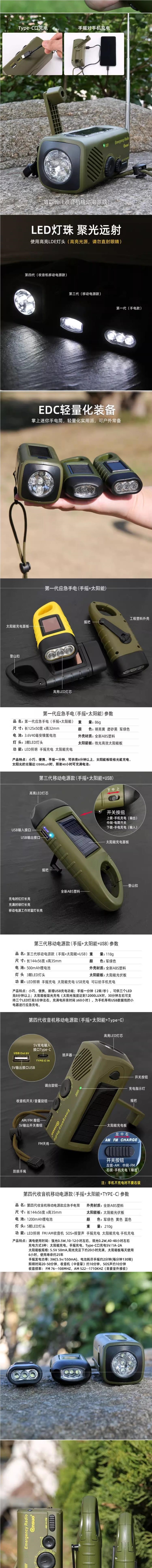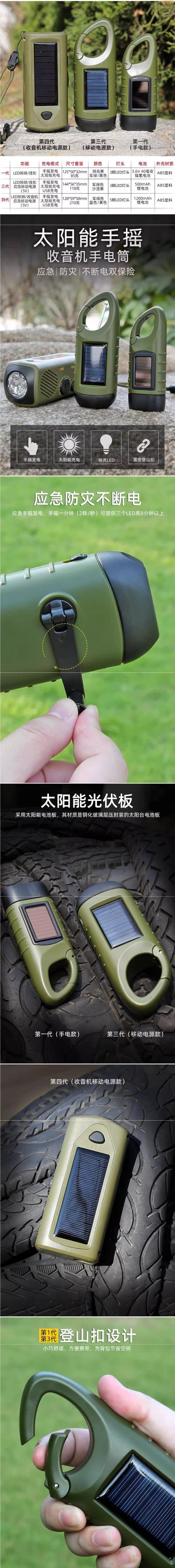 야외 핸드 크랭크 전원 손전등 태양 작은 손전등 충전 다기능 led 가정용 비상 방재 장비