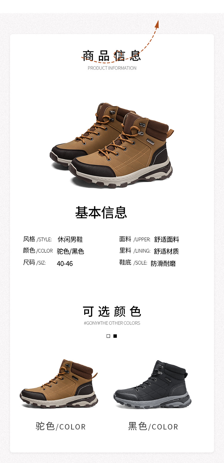 국경 간 하이 탑 신발 남성 가을 및 겨울 아메리칸 스타일 레트로 야외 등산 신발 두꺼운 밑창 내마모성 미끄럼 방지 하이 탑 툴링 신발