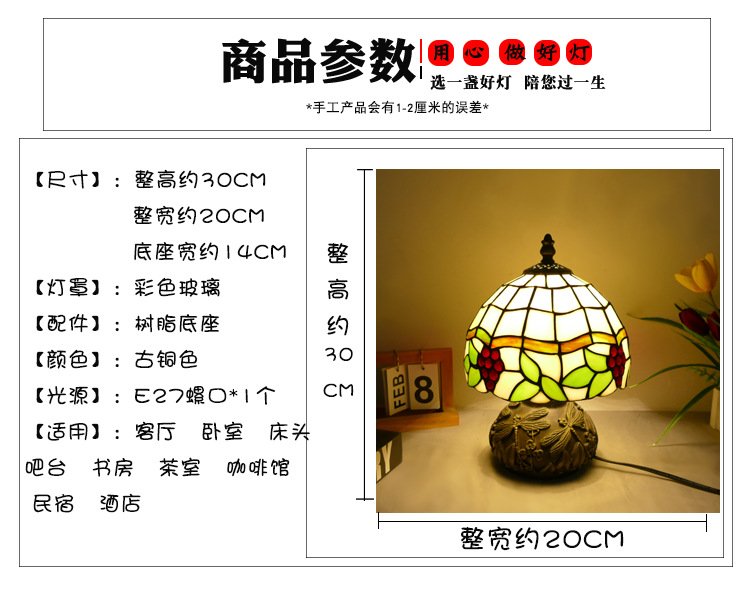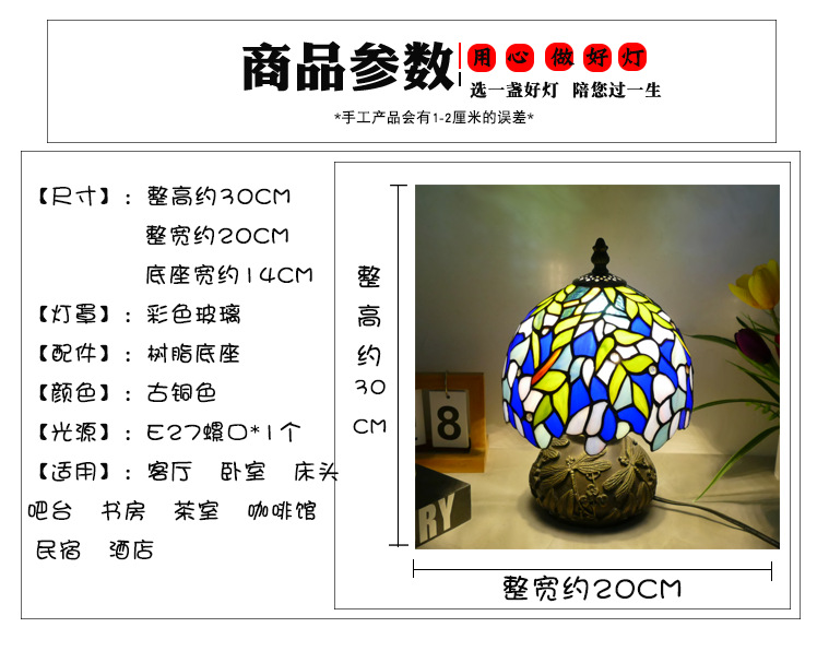 티파니 램프 티파니 잠자리 호텔 룸 침실 눈 보호 램프 레스토랑 장식 테이블 램프