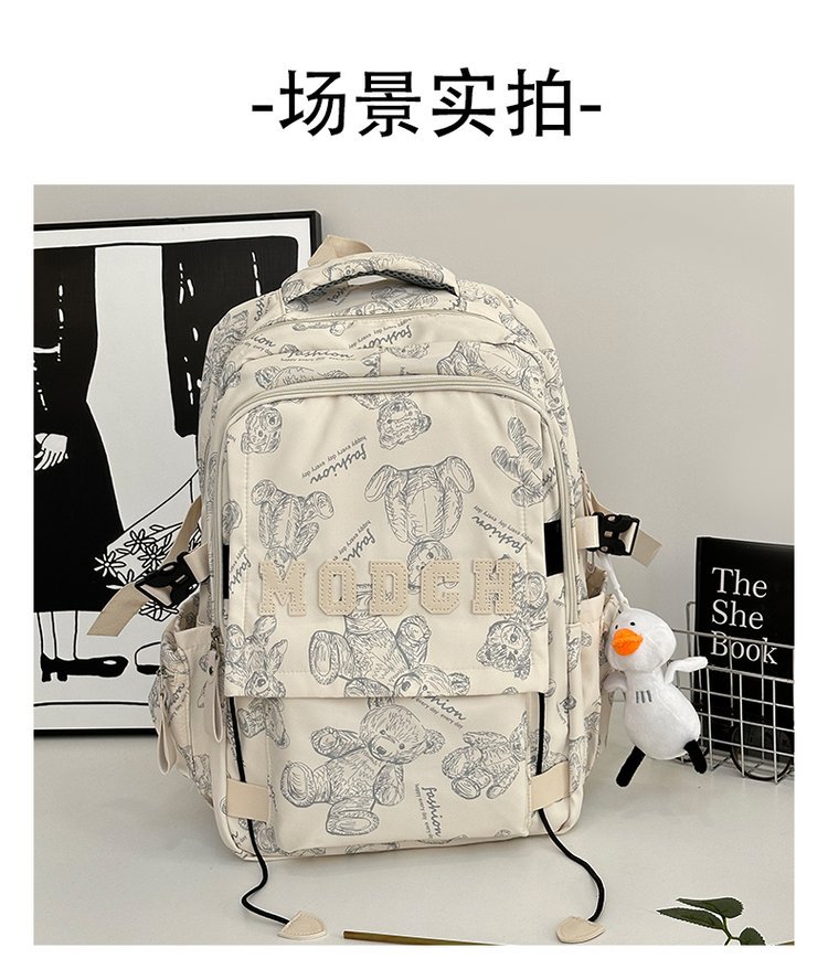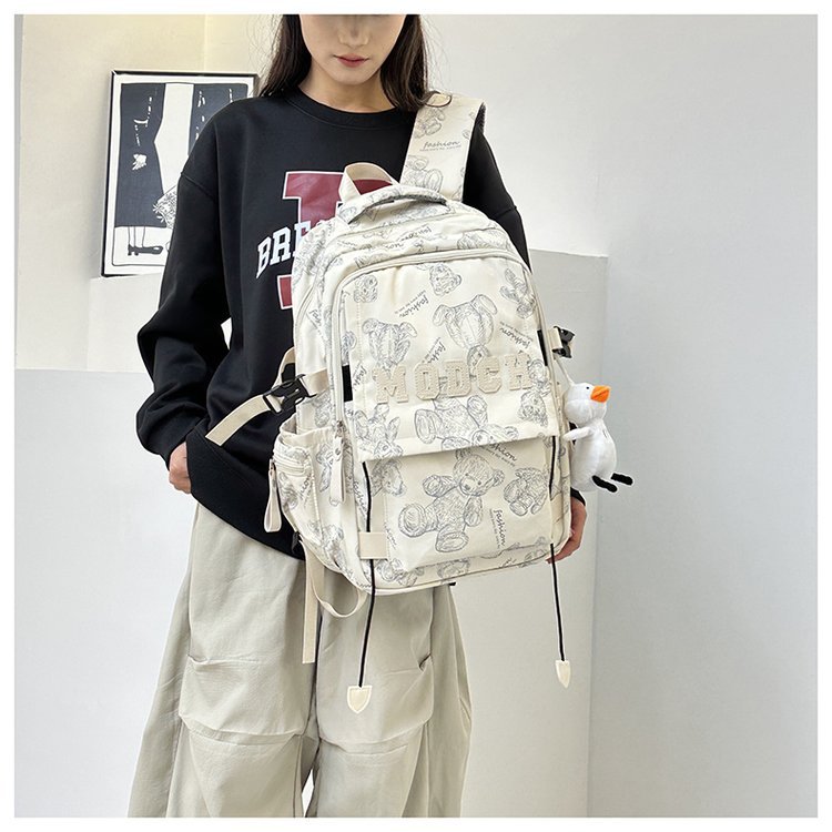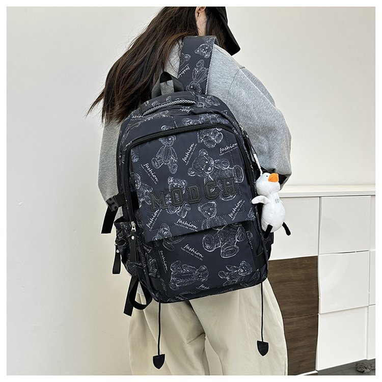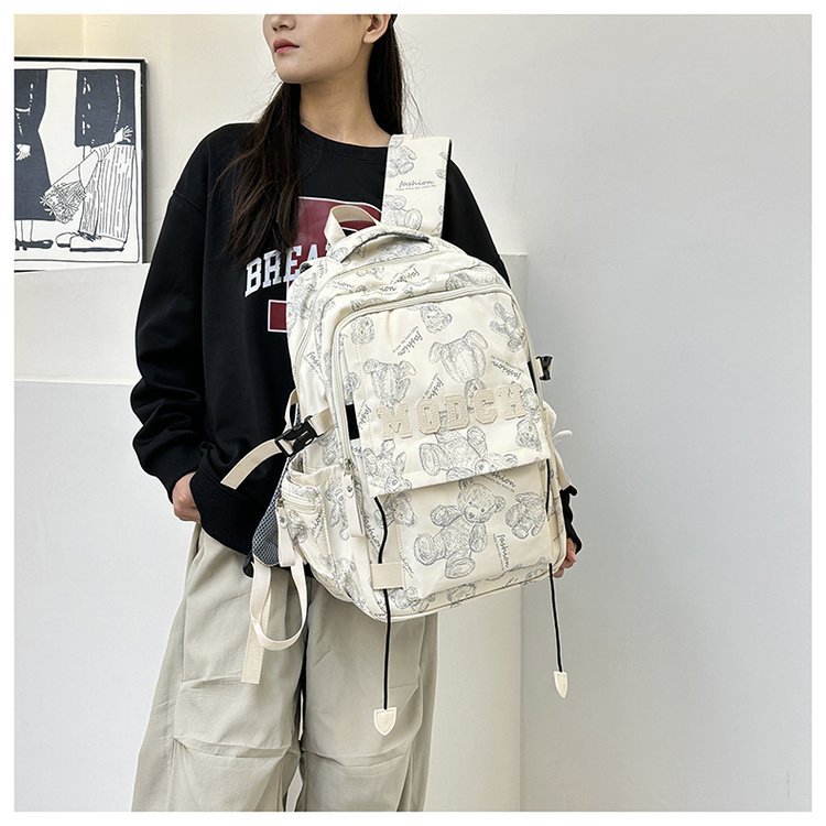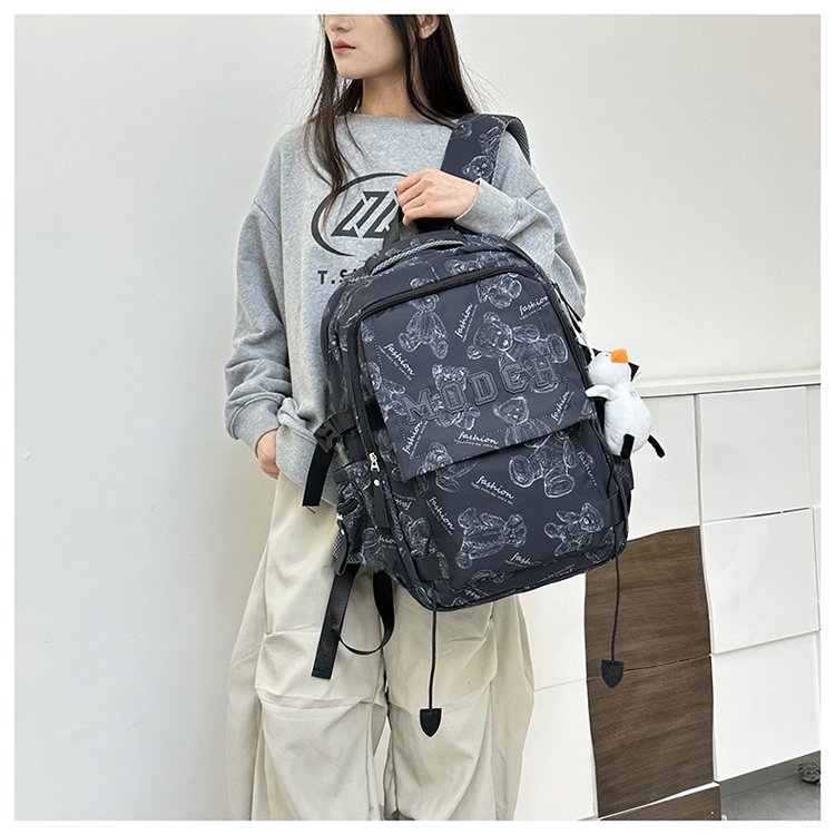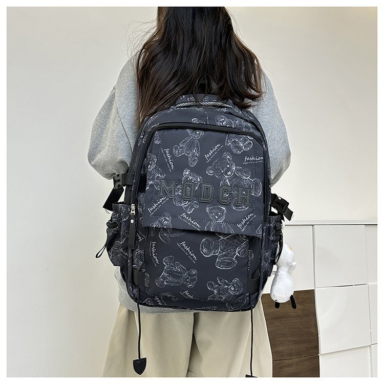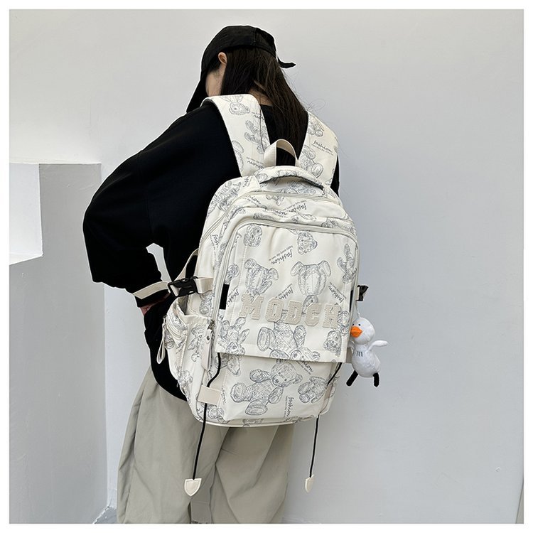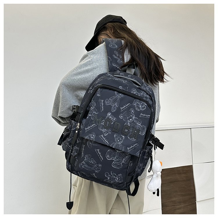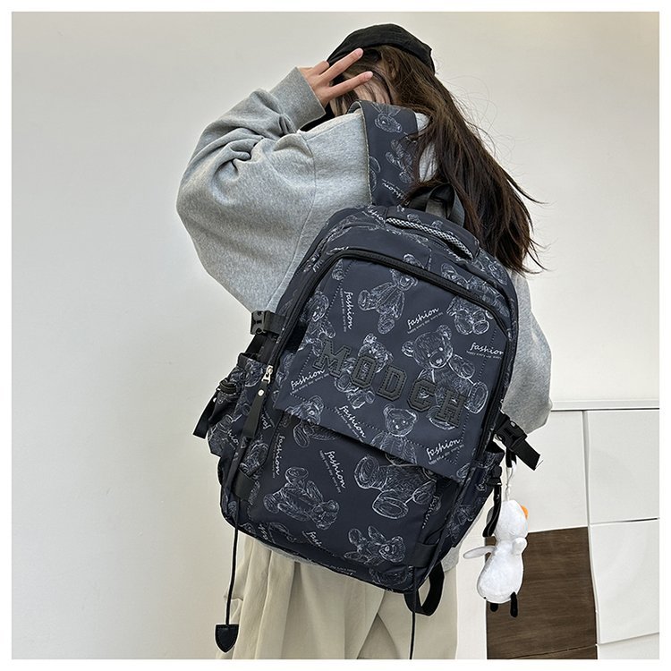 새로운 대용량 틈새 간단한 패션 올 매치 베어 인쇄 주니어 고등학교 학생 컴퓨터 여행 배낭스토어 가기