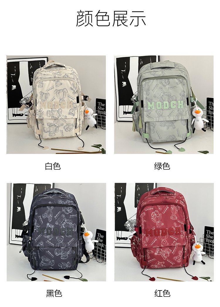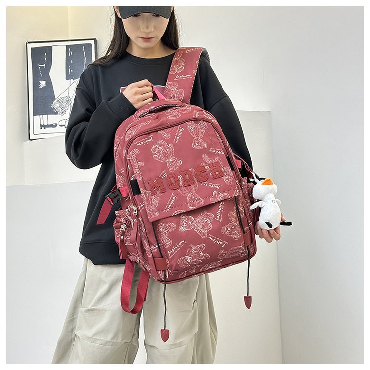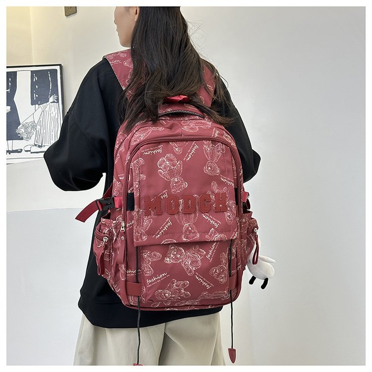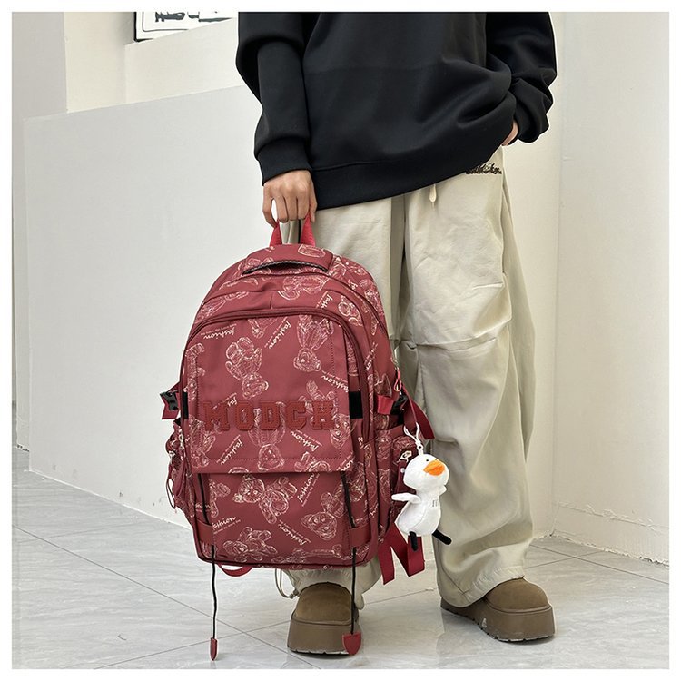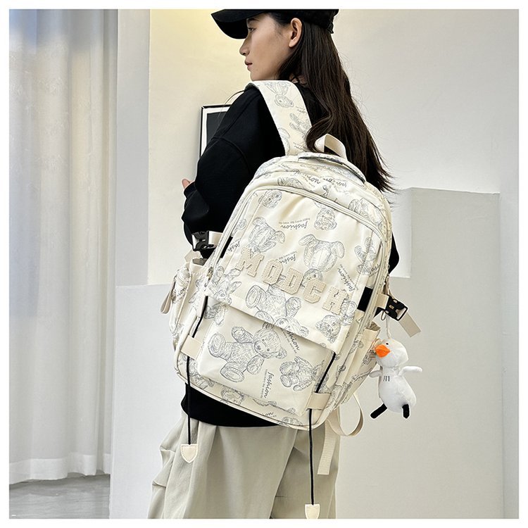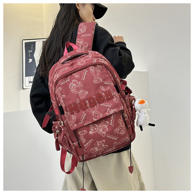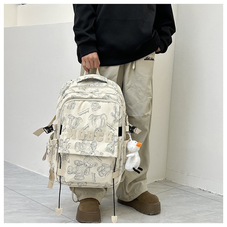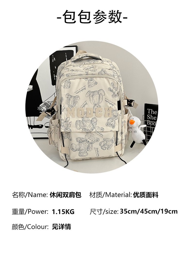 새로운 대용량 틈새 간단한 패션 올 매치 베어 인쇄 주니어 고등학교 학생 컴퓨터 여행 배낭스토어 가기