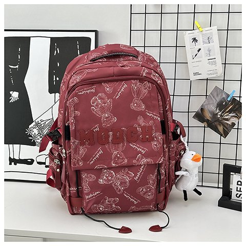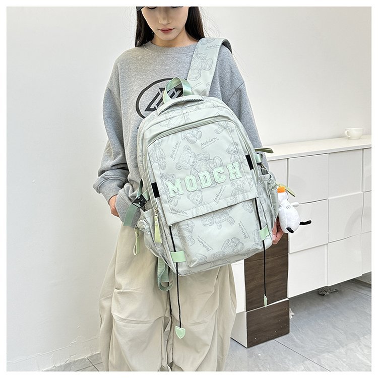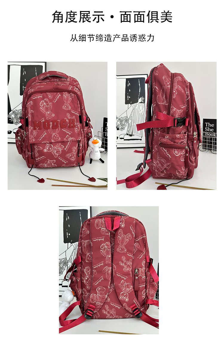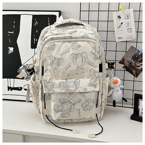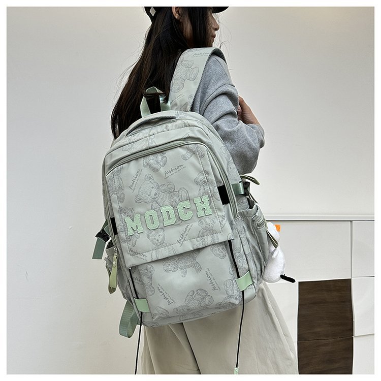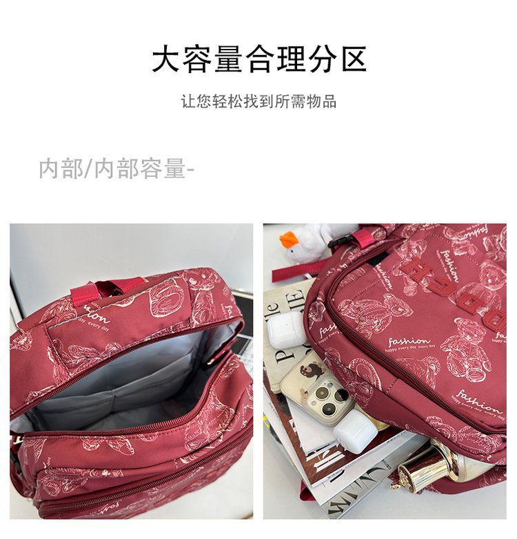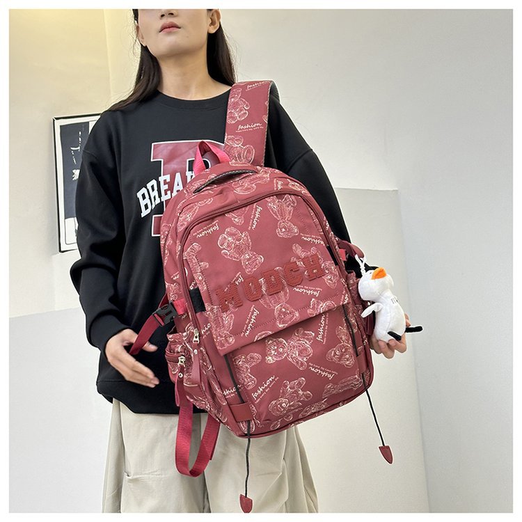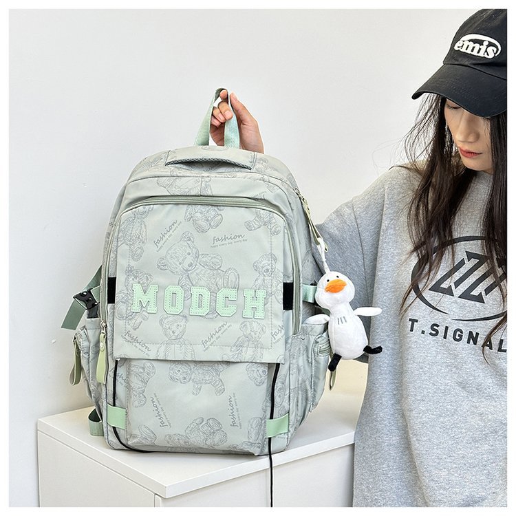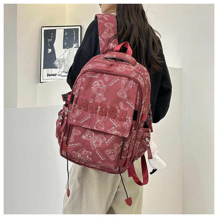 새로운 대용량 틈새 간단한 패션 올 매치 베어 인쇄 주니어 고등학교 학생 컴퓨터 여행 배낭스토어 가기