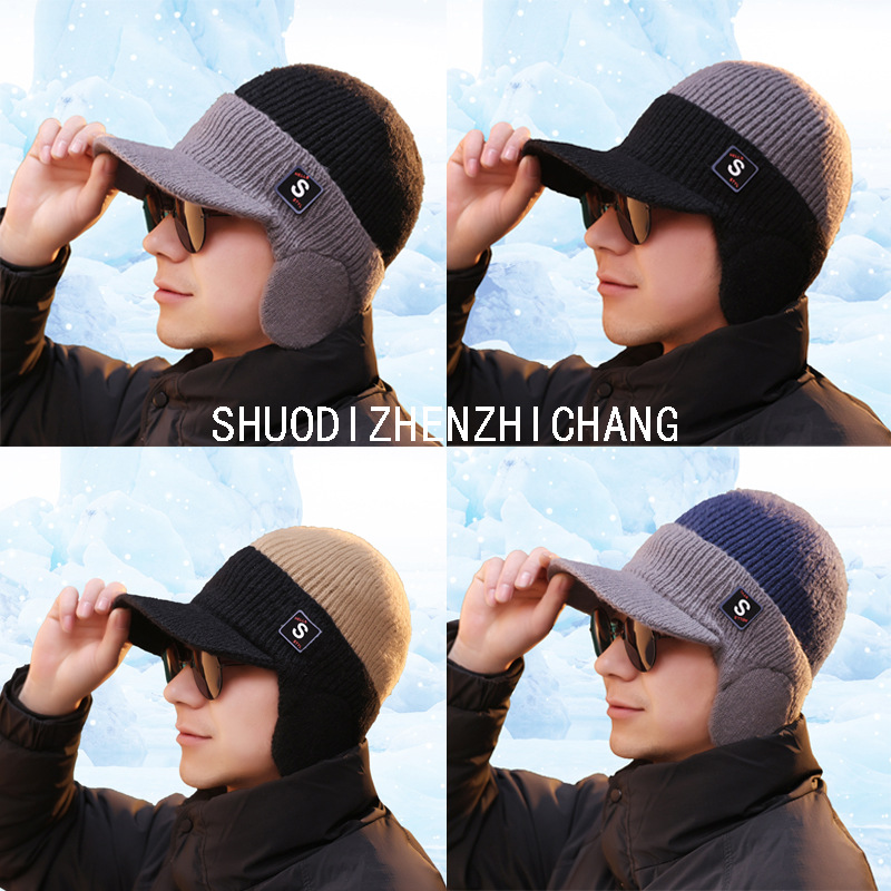 겨울 남성용 귀 보호 모자, 야외 라이딩용 보온 플리스 안감 방풍 니트 모자, 모조 캐시미어 모자, 방한용스토어 가기