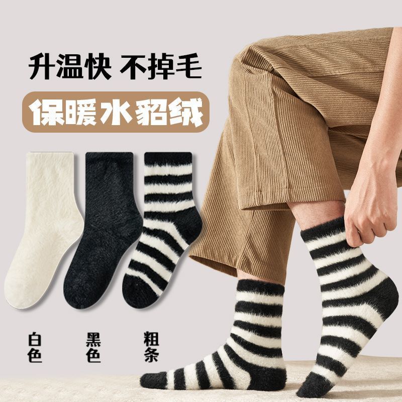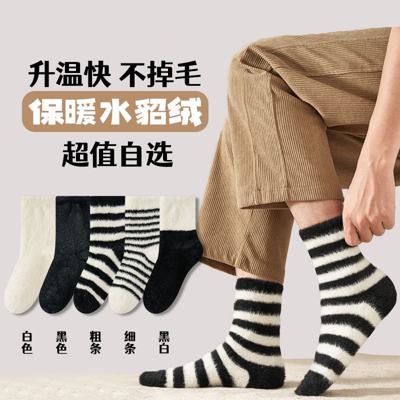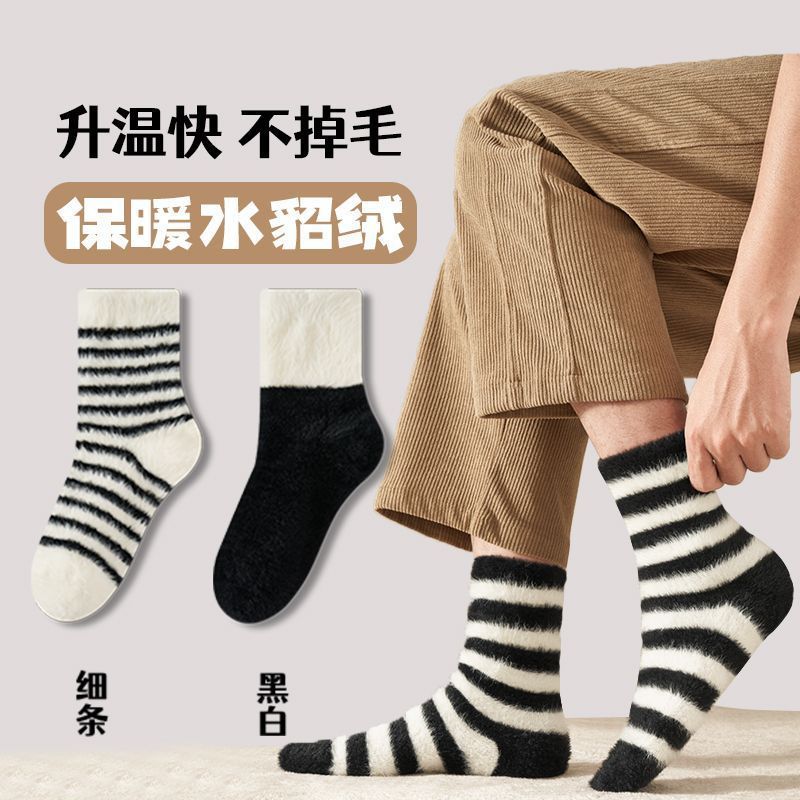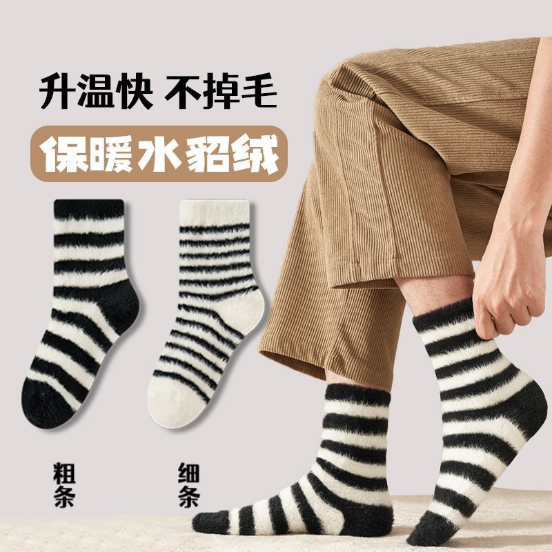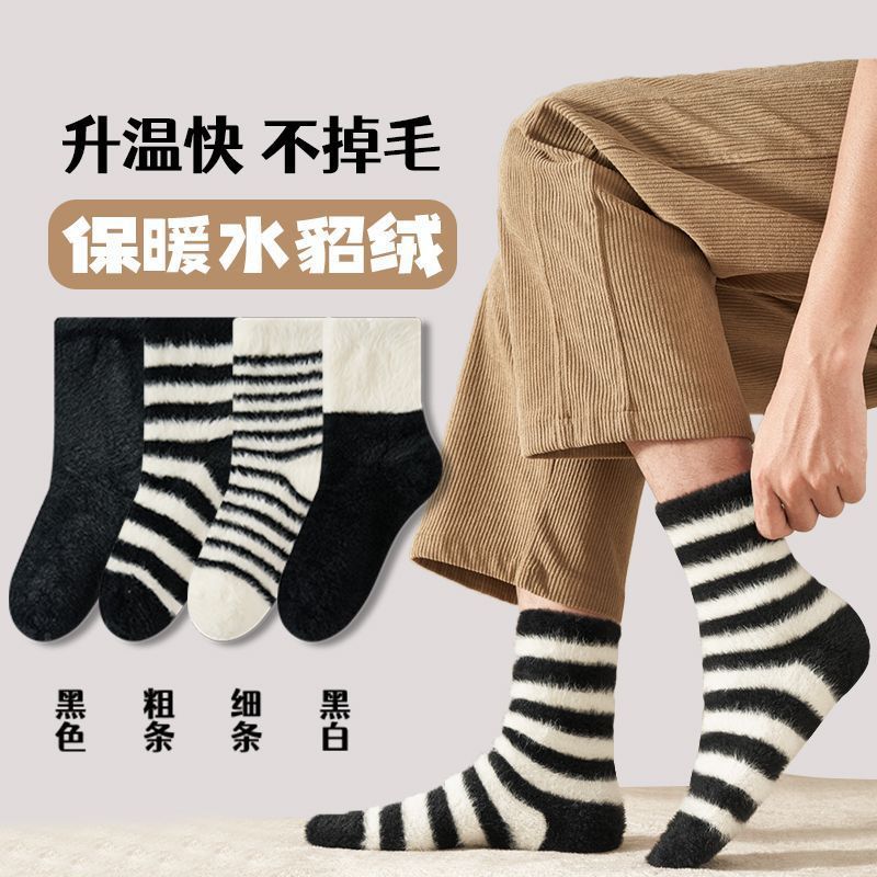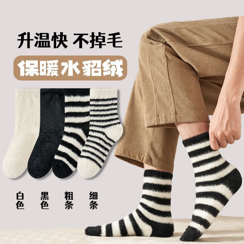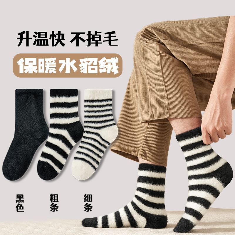 밍크 벨벳 양말 남자 미드 튜브 양말 겨울 기모 두꺼운 홈 따뜻한 수면 양말 모든 경기 줄무늬 모피 양말스토어 가기