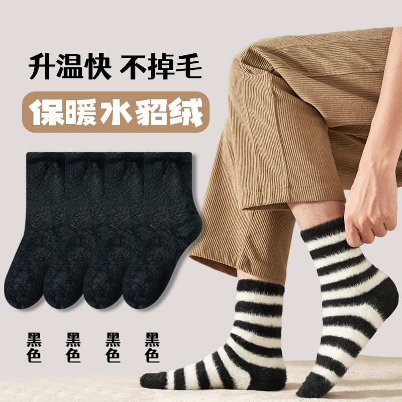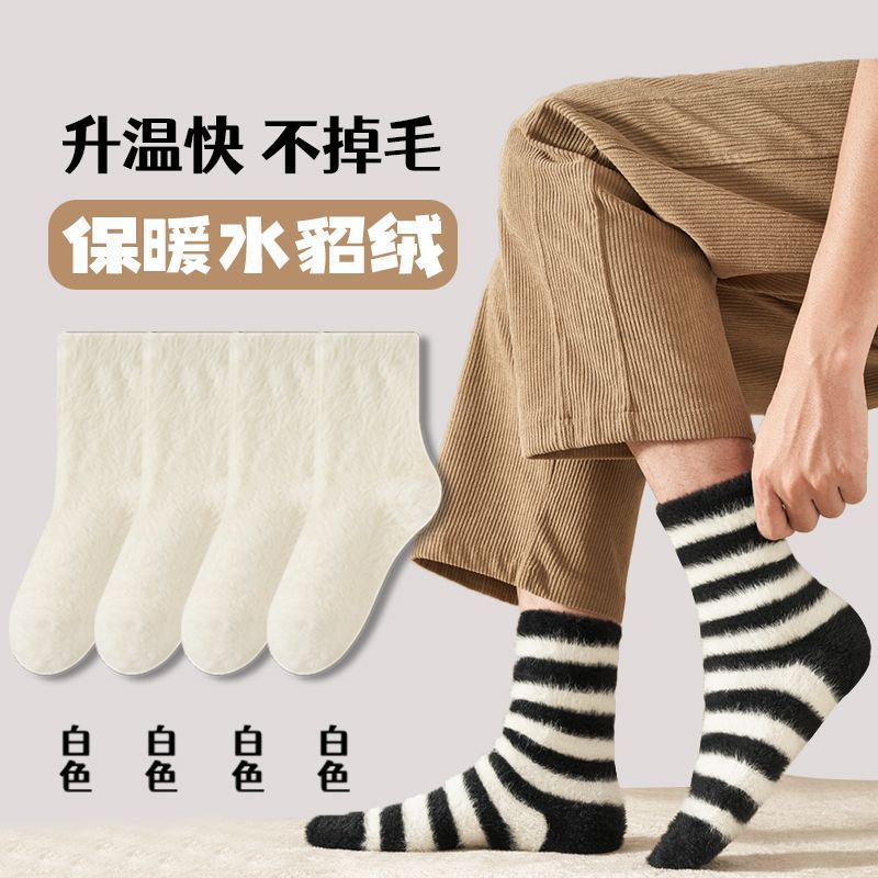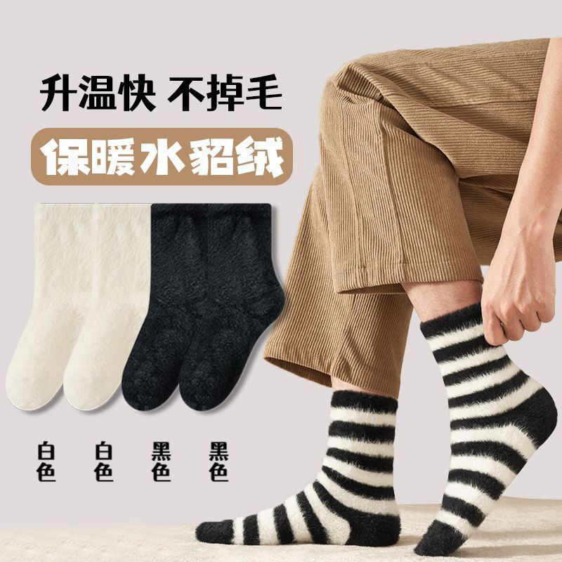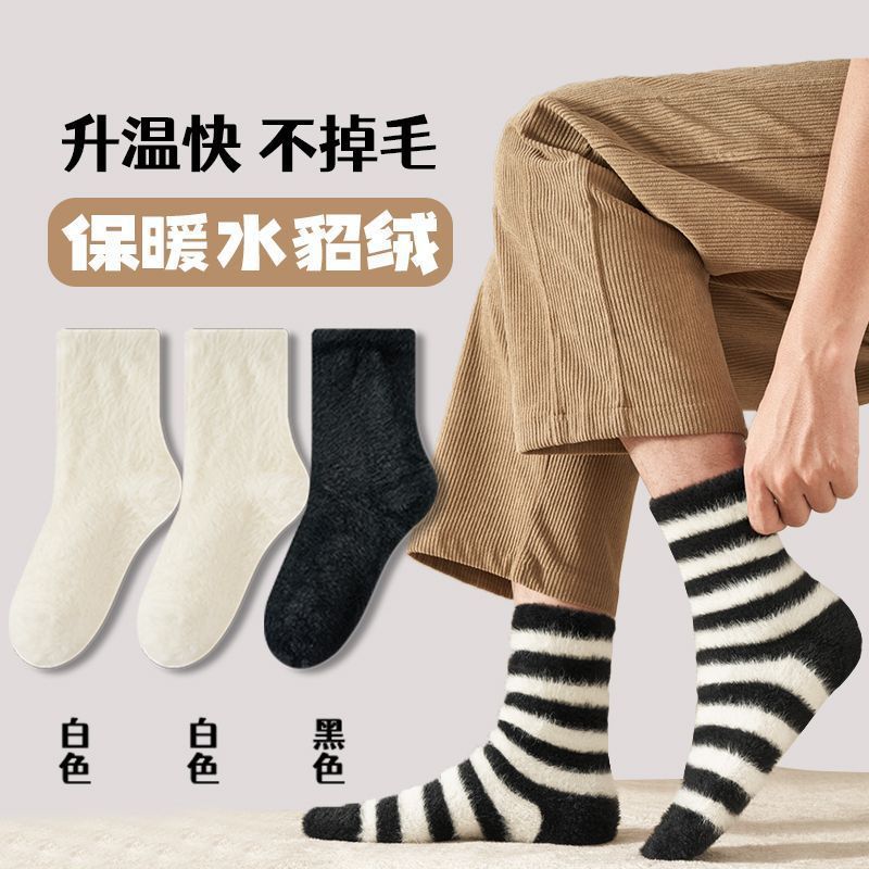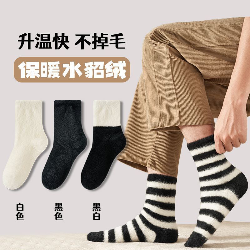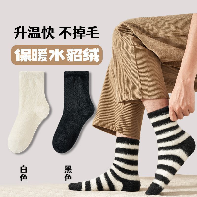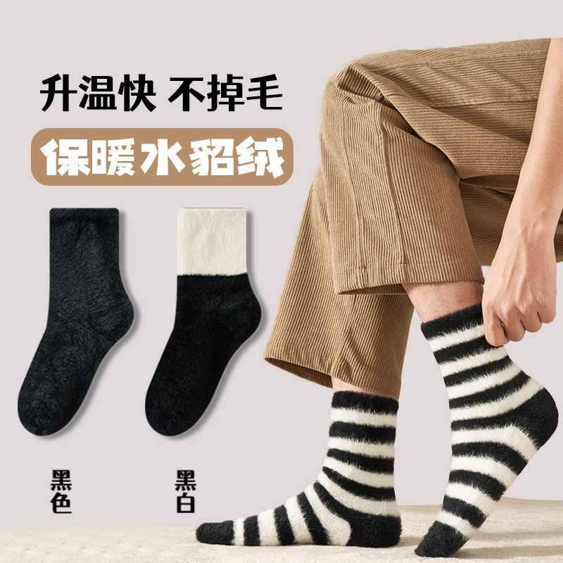 밍크 벨벳 양말 남자 미드 튜브 양말 겨울 기모 두꺼운 홈 따뜻한 수면 양말 모든 경기 줄무늬 모피 양말스토어 가기