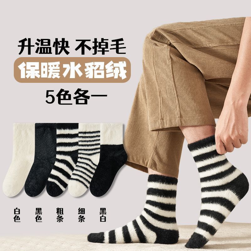 밍크 벨벳 양말 남자 미드 튜브 양말 겨울 기모 두꺼운 홈 따뜻한 수면 양말 모든 경기 줄무늬 모피 양말
