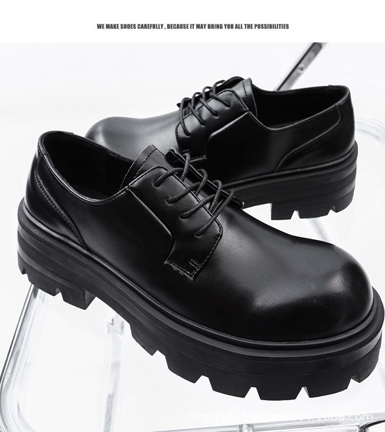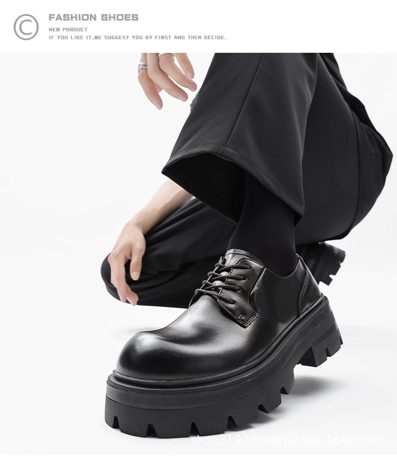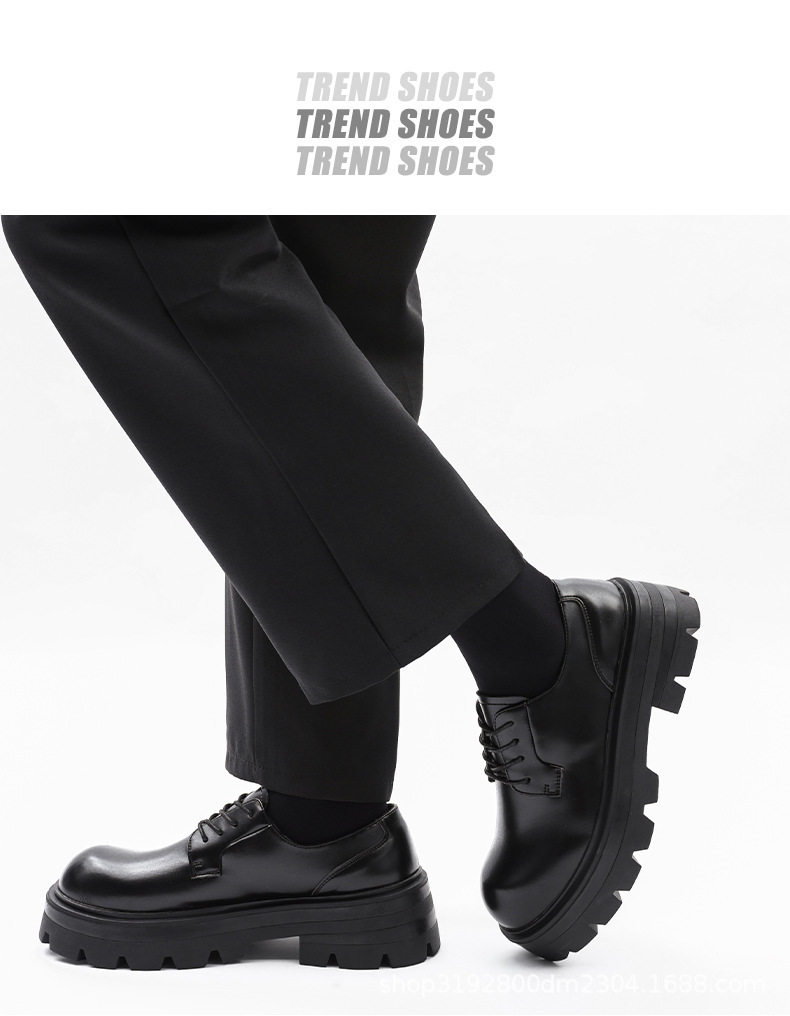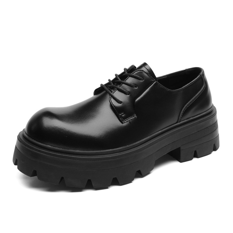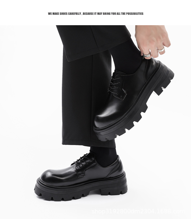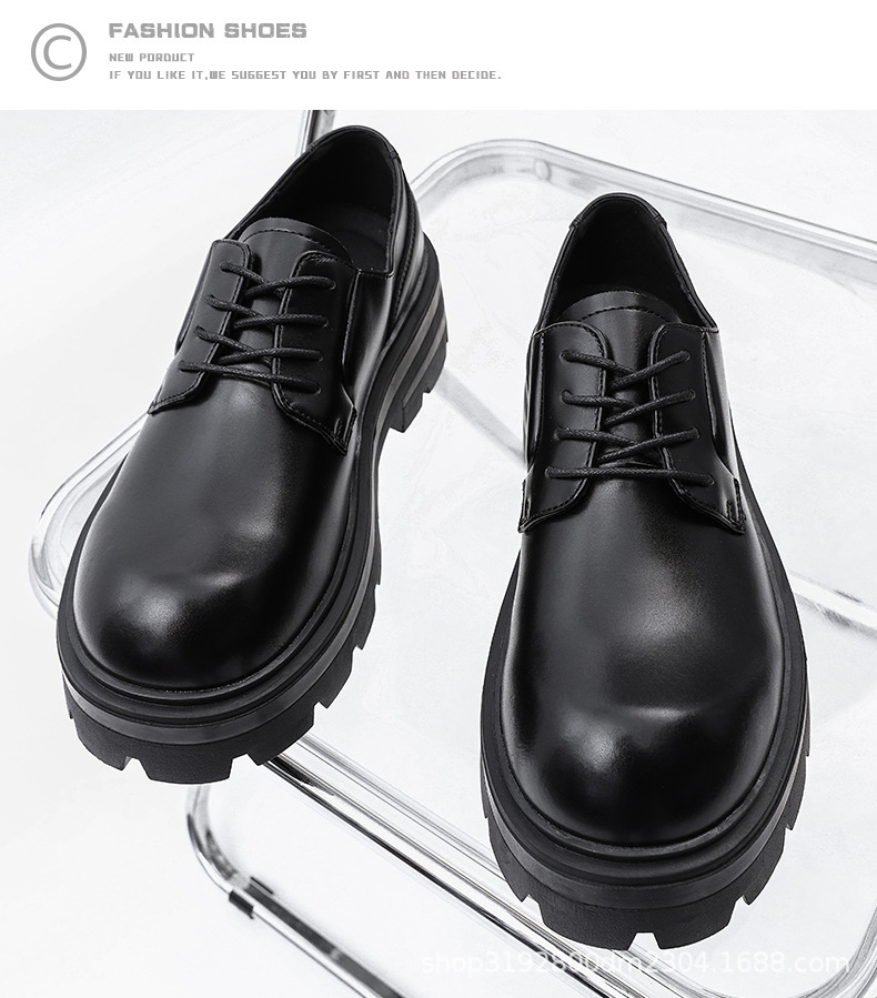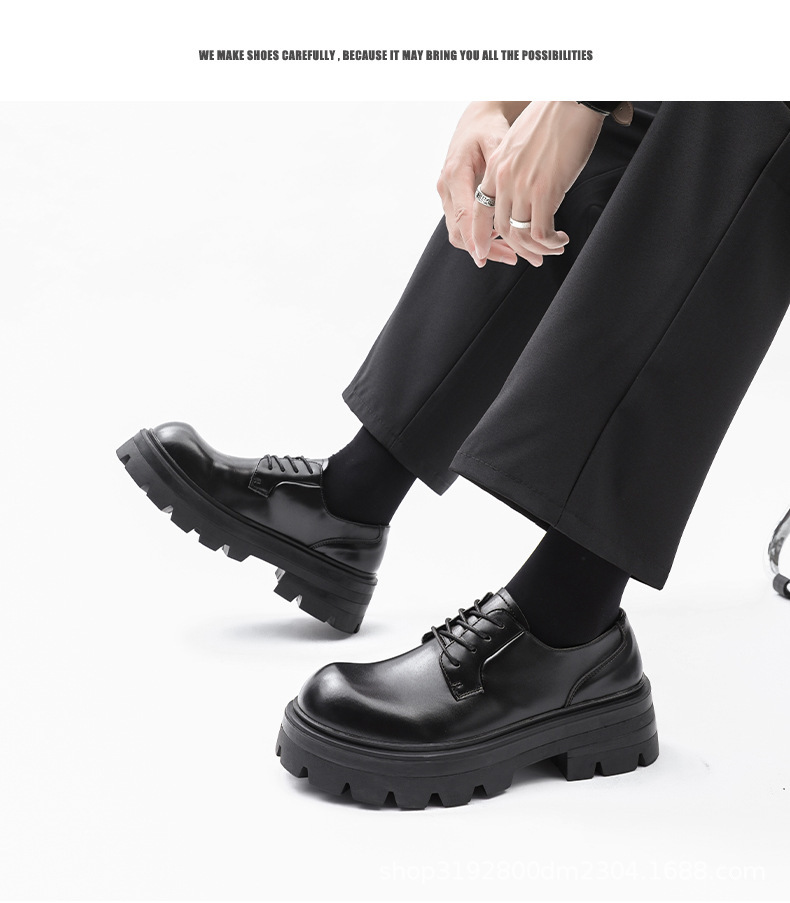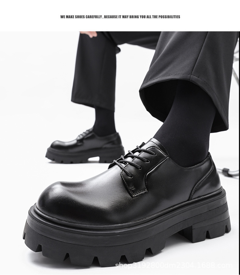 8133 더비 신발 남자 2024 새로운 두꺼운 바닥 정품 가죽 틈새 증가 큰 머리 캐주얼 작은 가죽 신발 블랙 작업복 신발스토어 가기