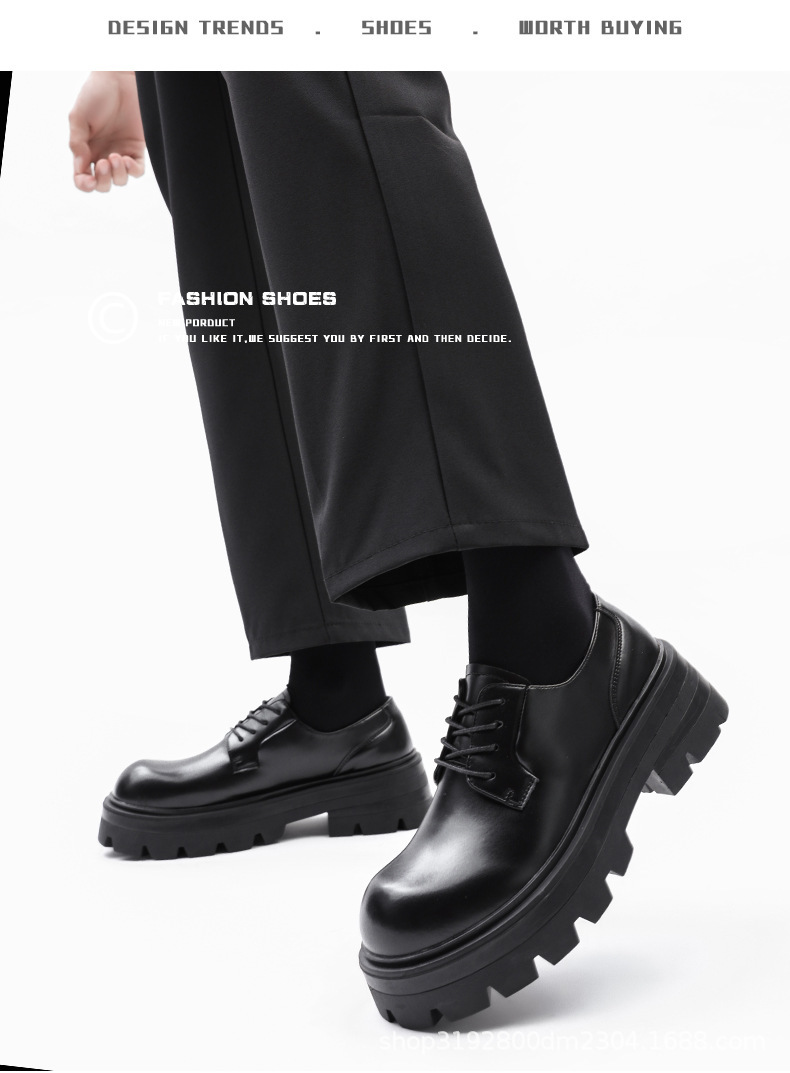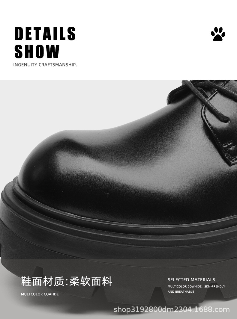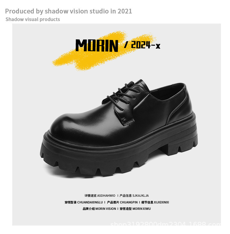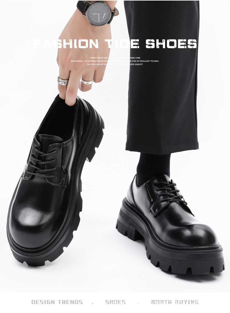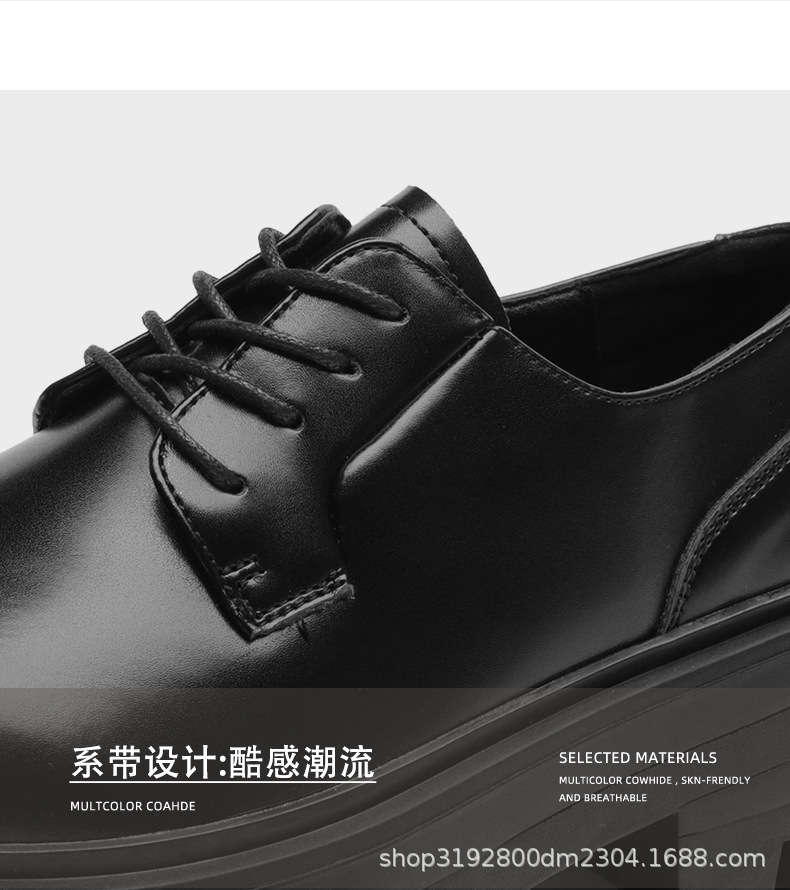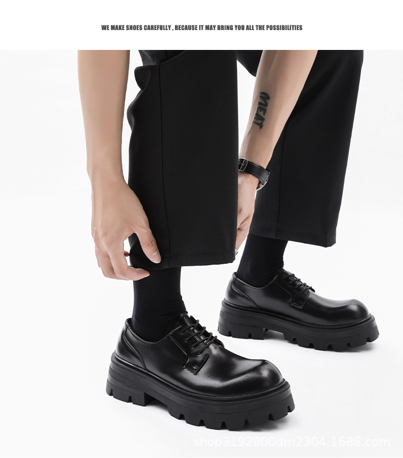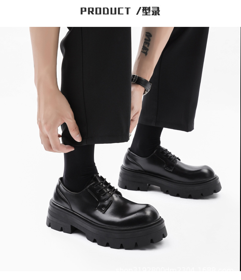 8133 더비 신발 남자 2024 새로운 두꺼운 바닥 정품 가죽 틈새 증가 큰 머리 캐주얼 작은 가죽 신발 블랙 작업복 신발스토어 가기