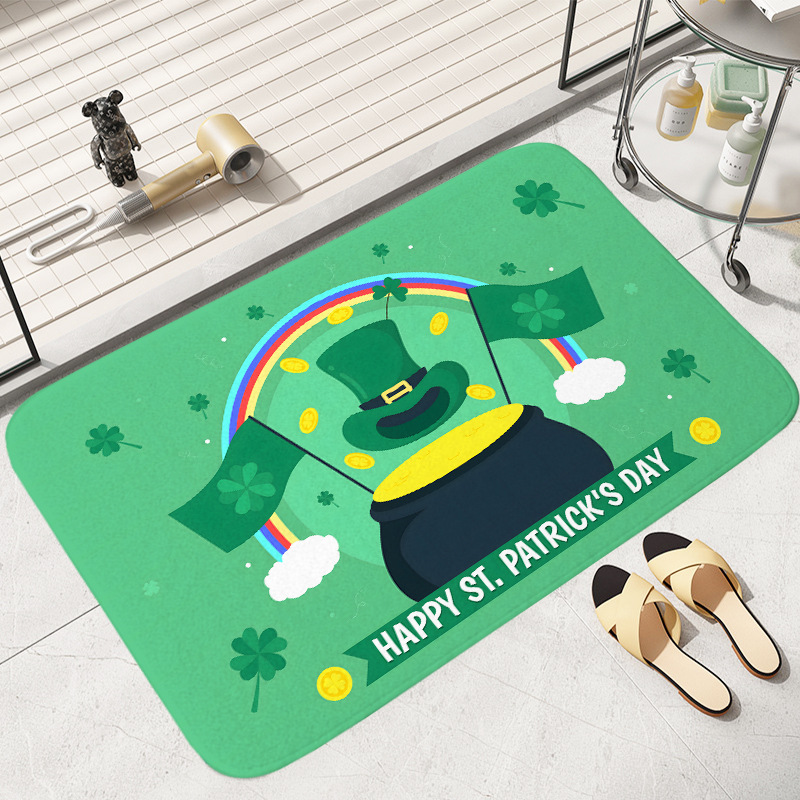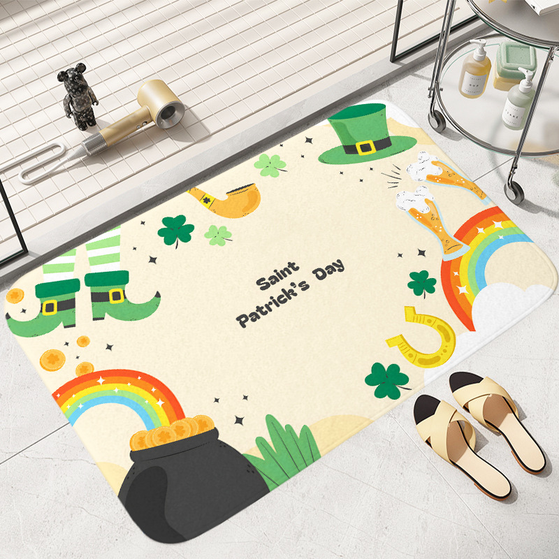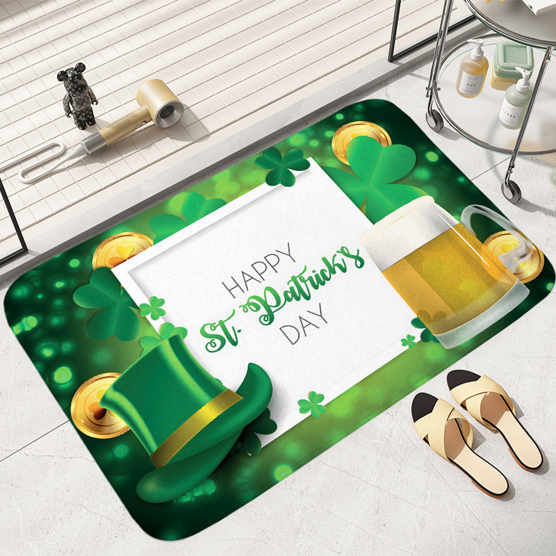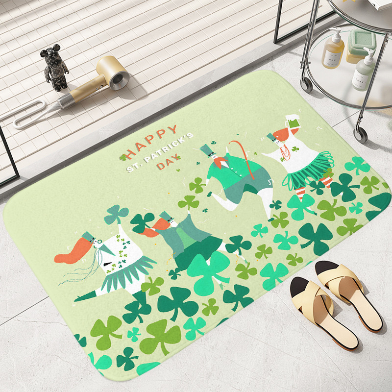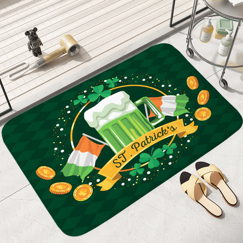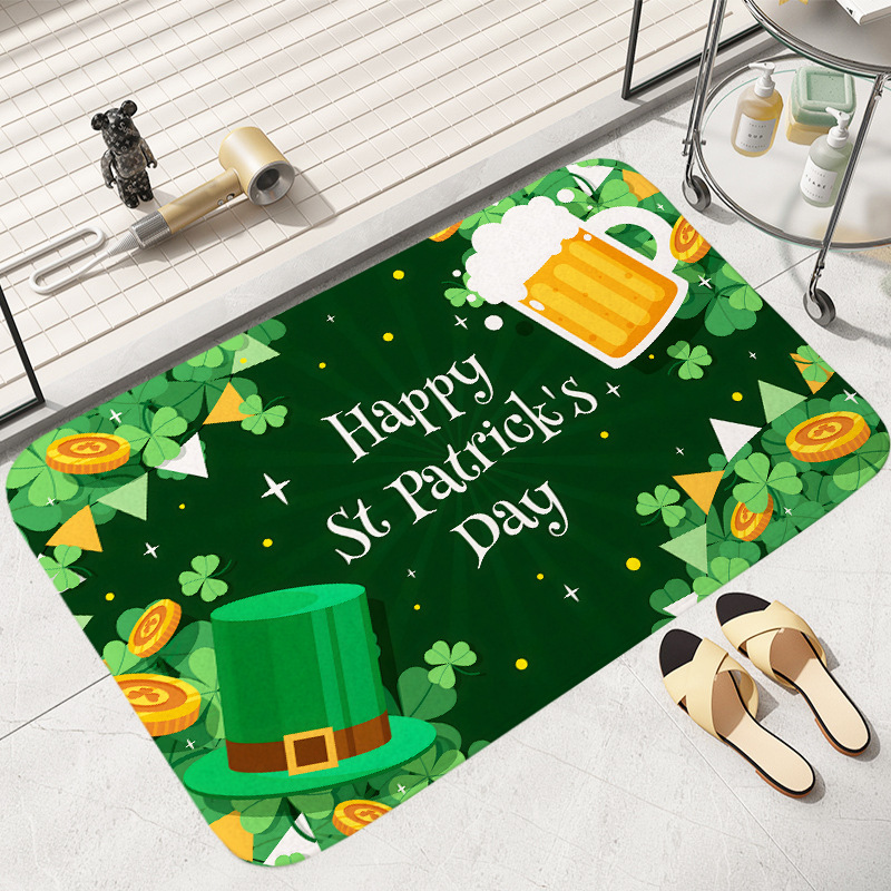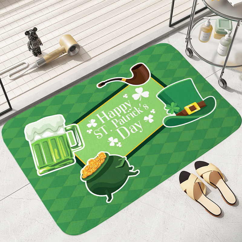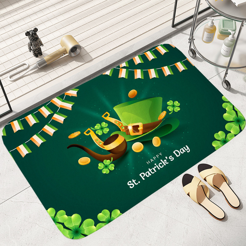 국경 간 성 패트릭의 날 플란넬 바닥 매트 욕실 미끄럼 방지 바닥 매트 주방 흡수성 바닥 매트 입구 문 바닥 매트