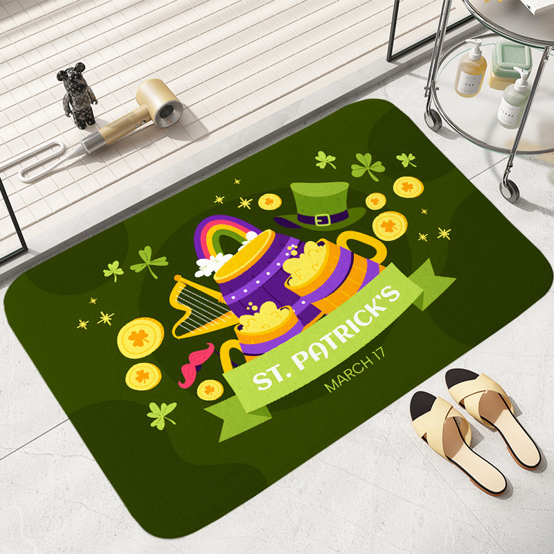 국경 간 성 패트릭의 날 플란넬 바닥 매트 욕실 미끄럼 방지 바닥 매트 주방 흡수성 바닥 매트 입구 문 바닥 매트스토어 가기