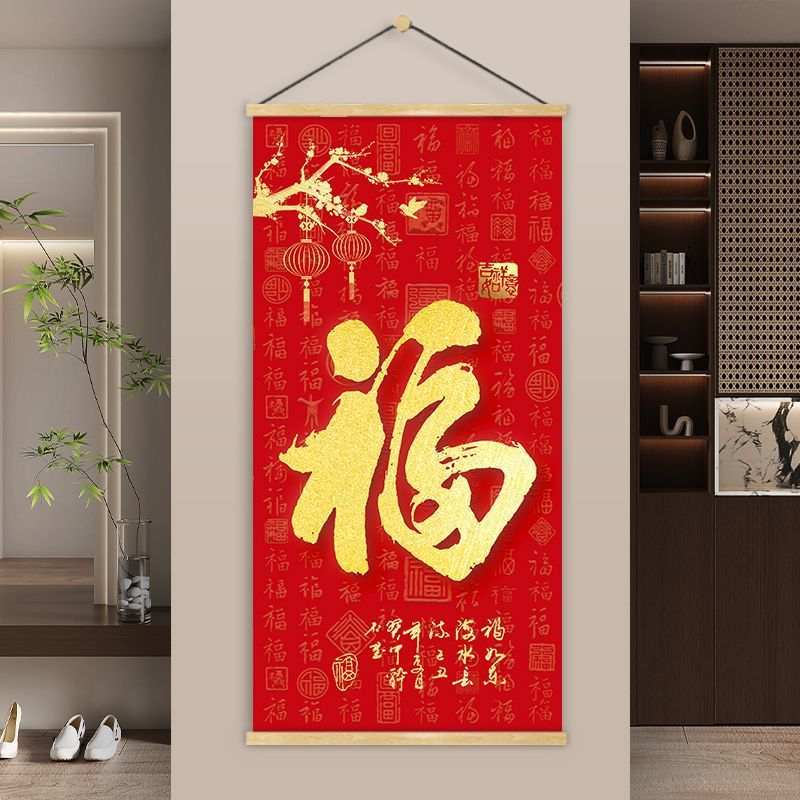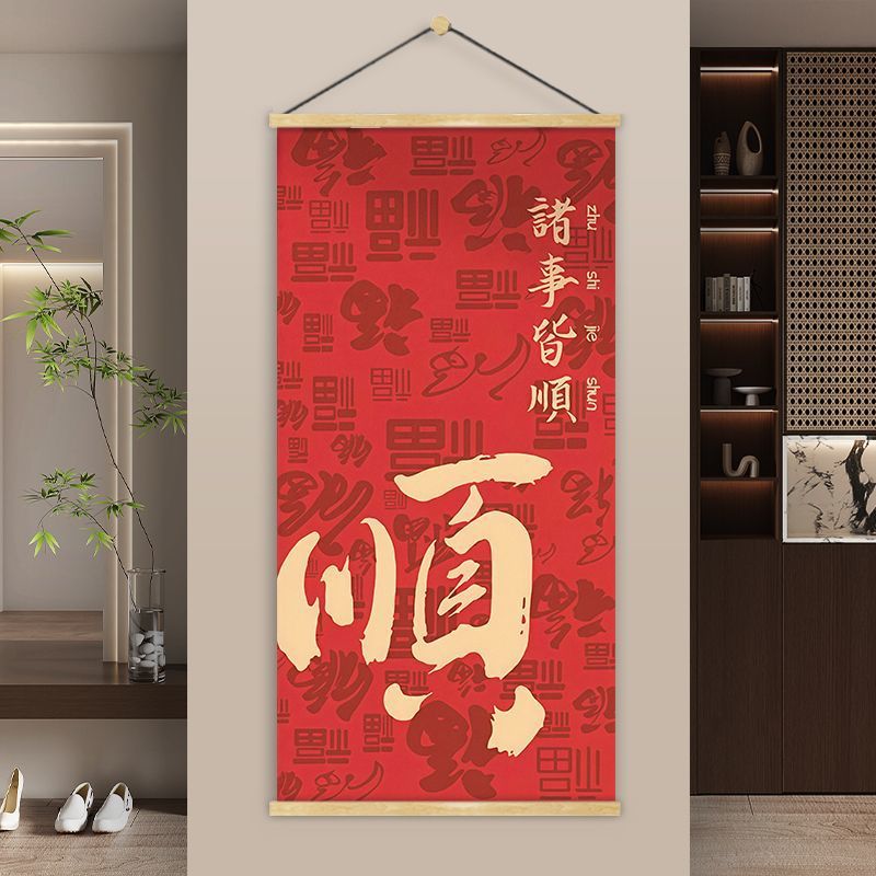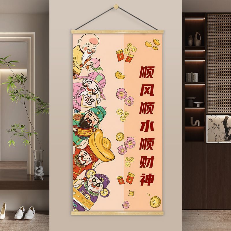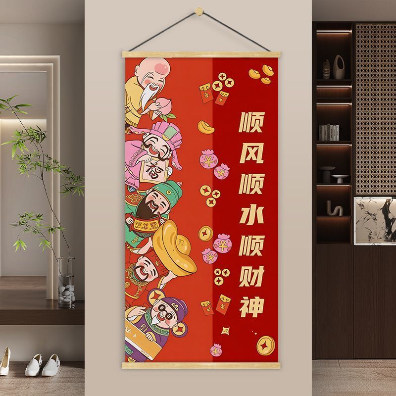 새해 사진 배치 세트 새해 바이푸 사진 교수형 거실 입구 샤프트 스크롤 입장 문 복도 축복 그림 수직